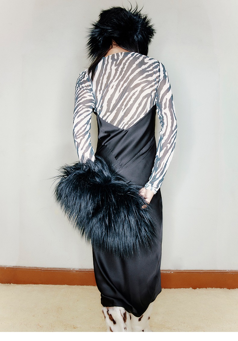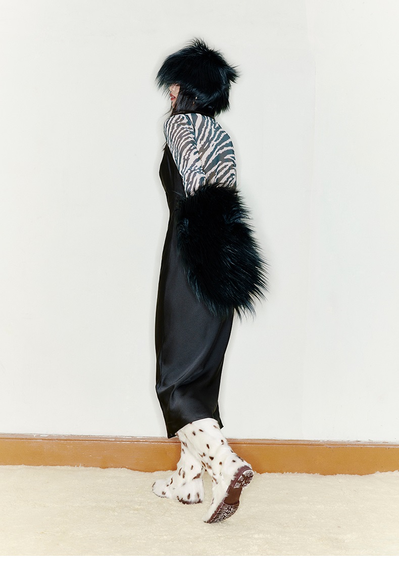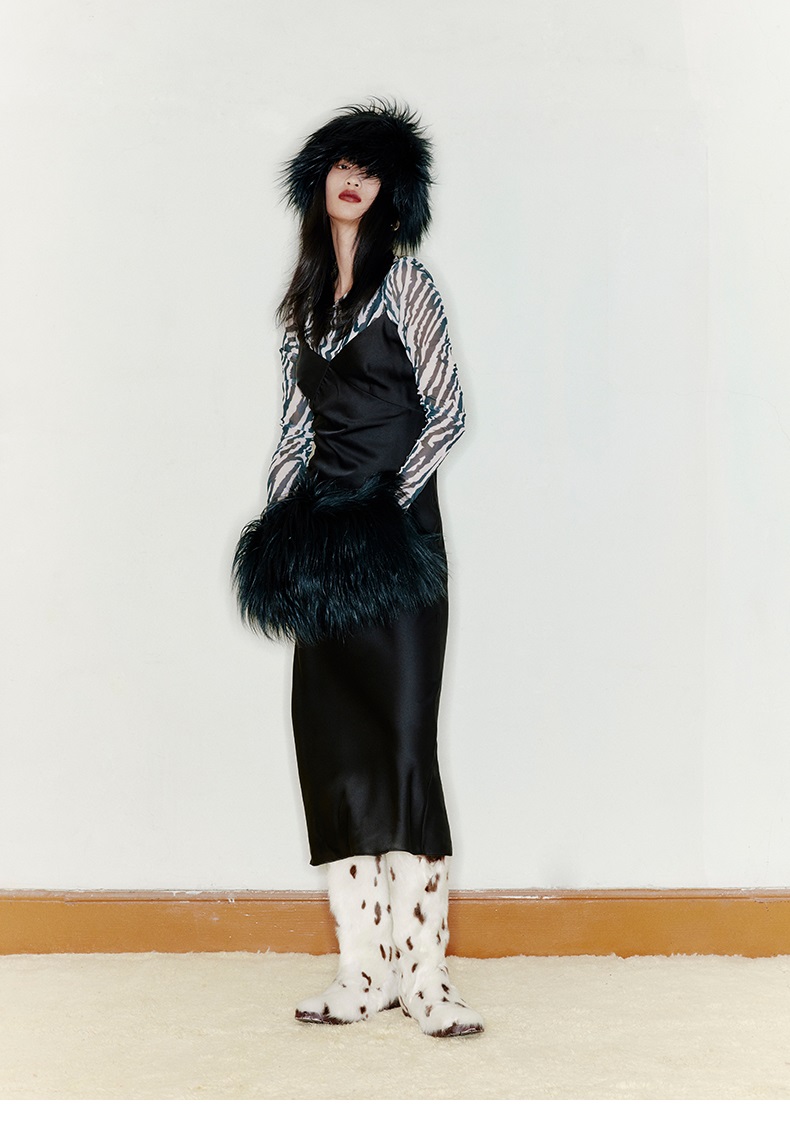 【月光】光泽感露背吊带过膝斜裁连衣裙/22000034A