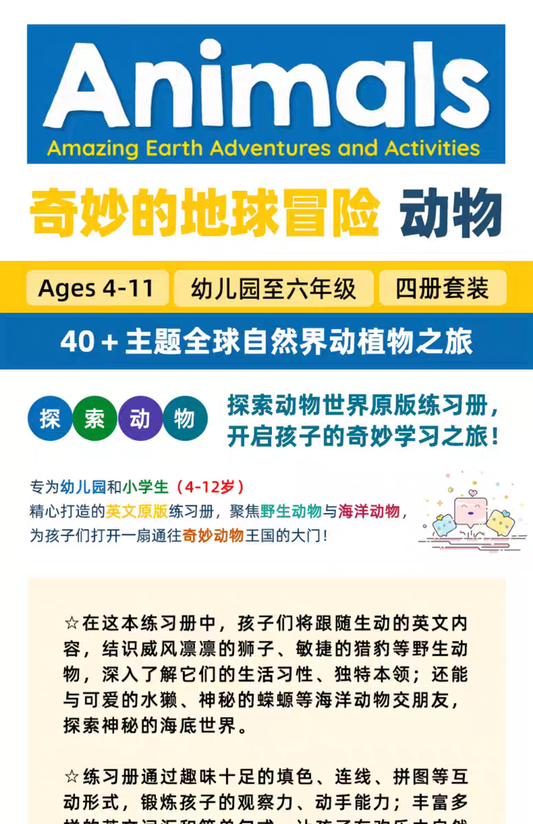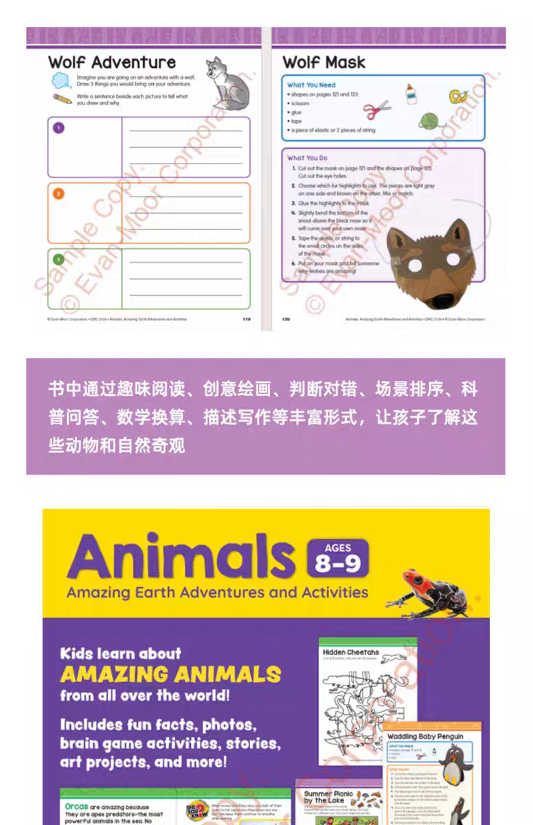 【中商原版】Evan Moor Animals Amazing Earth Adventures and Activities 奇妙的地球冒险 动物 6-7岁 美国教辅原版evanmoor