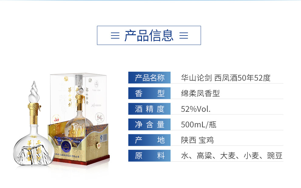 西凤酒 华山论剑50年 凤香型 500ml 52%vol