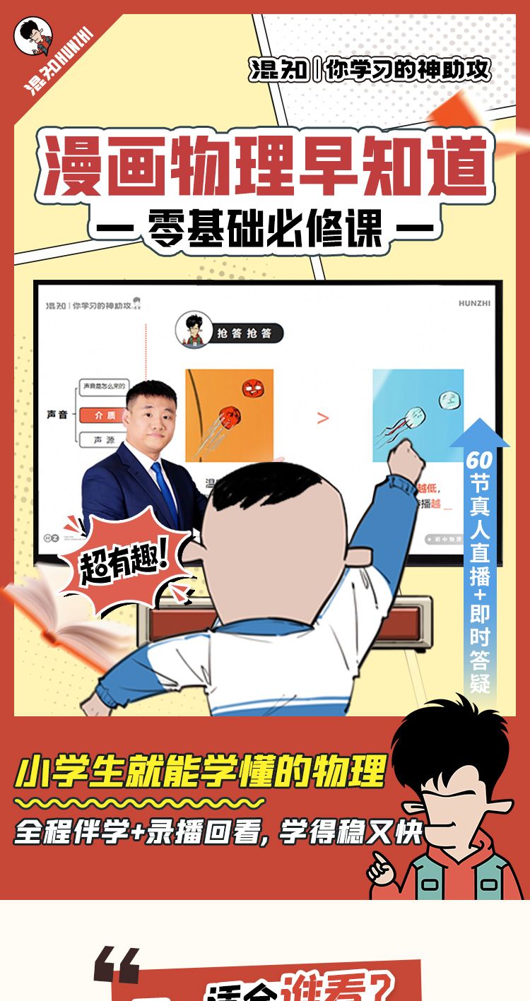 漫画物理早知道 0基础必修 | 60节直播+120节录播+全程伴学服务+图书《物理早知道》