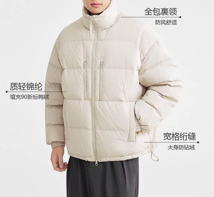 墨麦客男装2025年冬季新款立领包裹领短款羽绒服男士加厚羽绒外套