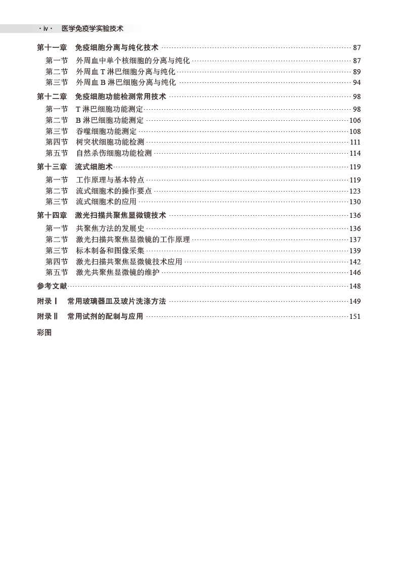 本书共14章,分别介绍了抗体制备与纯化技术、凝集反应与沉淀反应实验技术、酶免疫技术、免疫荧光技术、化学发光免疫技术、免疫金标记技术、免疫印迹技术、免疫沉淀技术、放射性标记技术、免疫细胞分离与纯化技术、免疫细胞功能检测常用技术、流式细胞术、激光扫描共聚焦显微镜技术等常用免疫学实验技术。同时还附有常用试剂配制的内容。