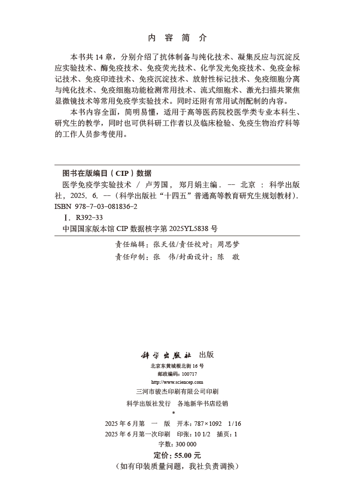 医学免疫学实验技术 十四五普通高等教育研究生规划教材 卢芳国 郑月娟 供全国高等中医药院校中医学中西医结合中药学等科学出版社