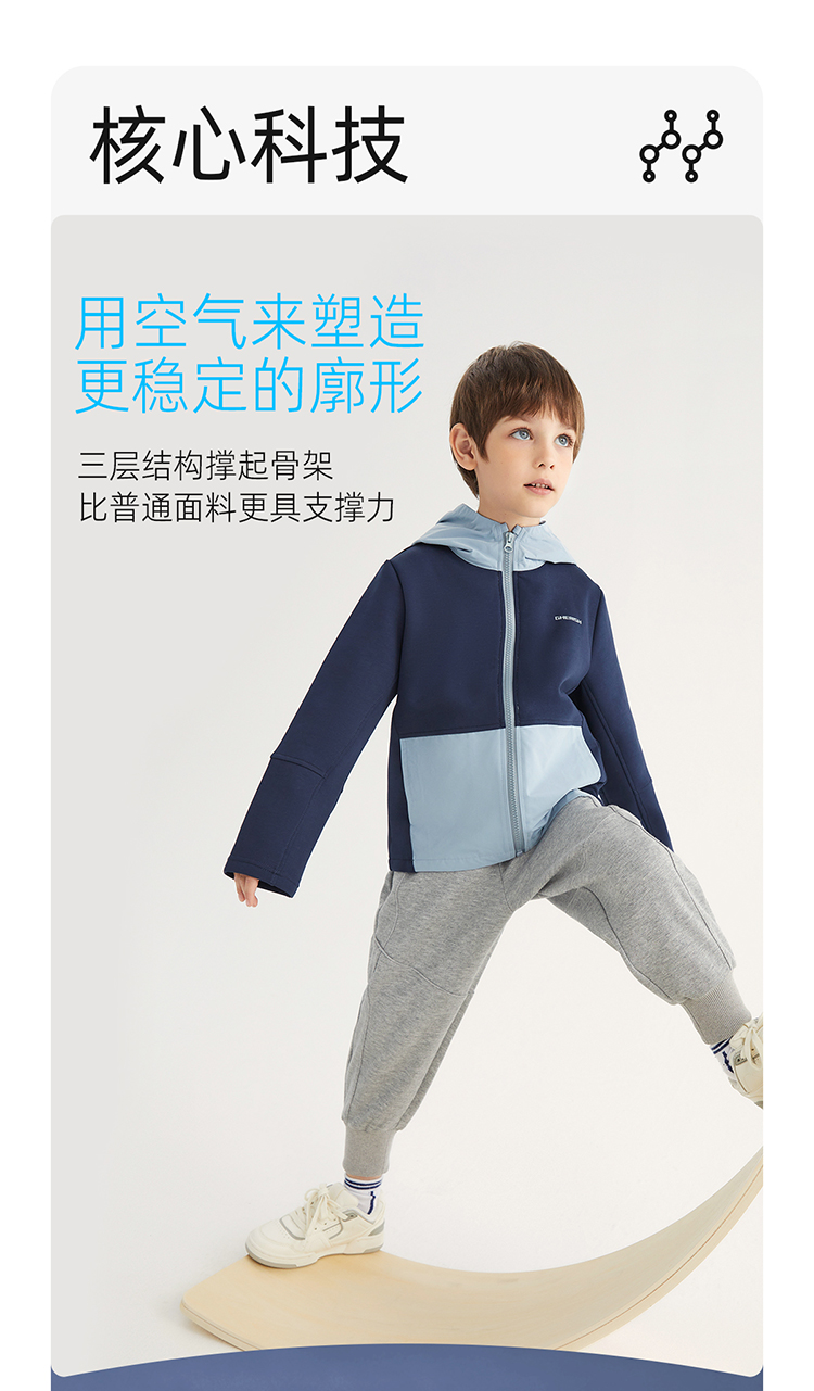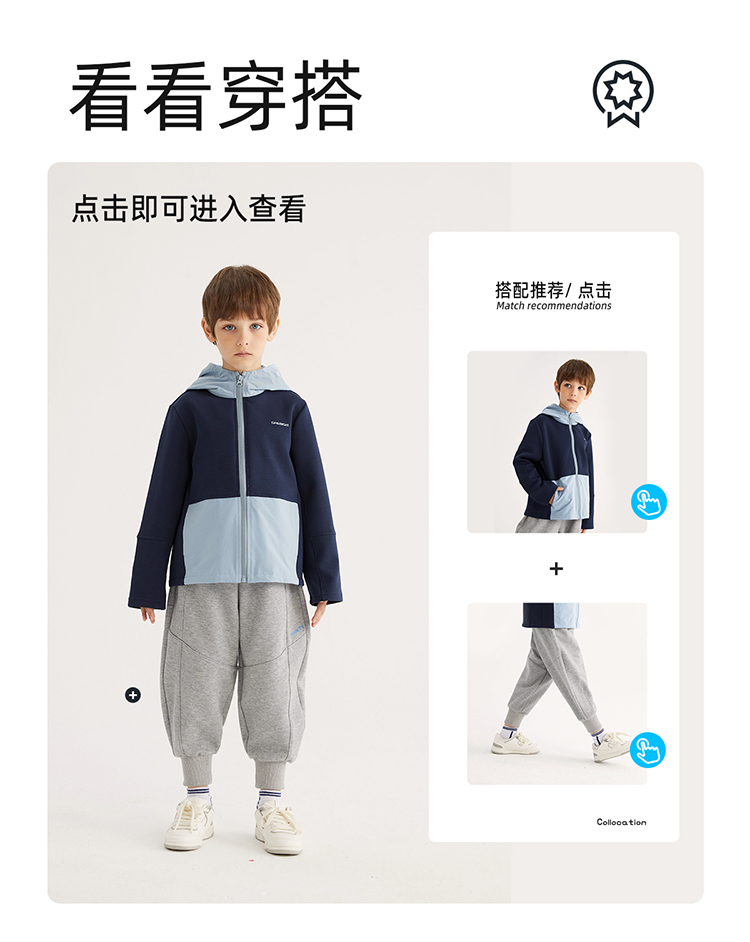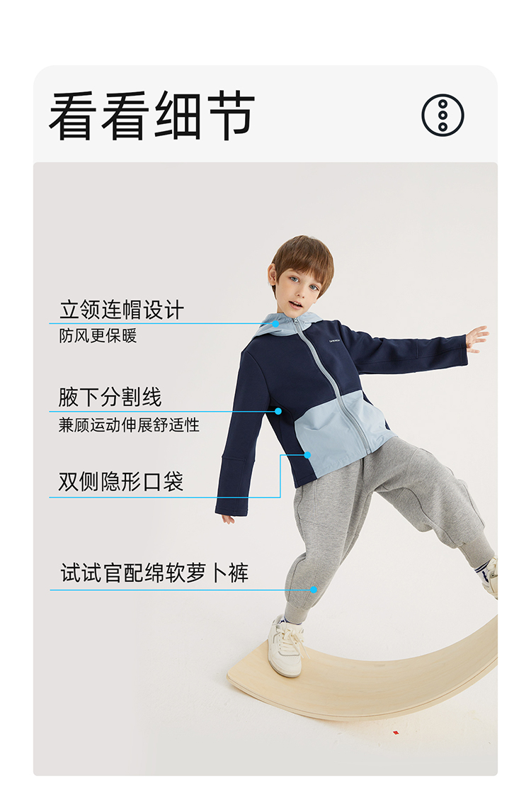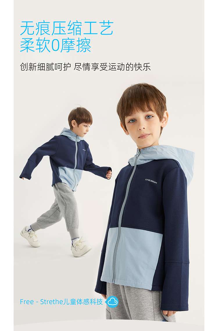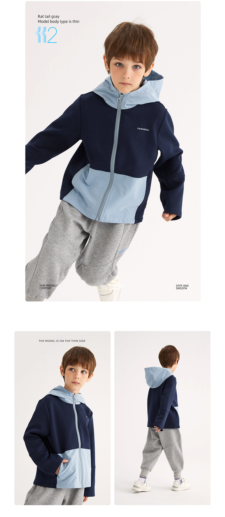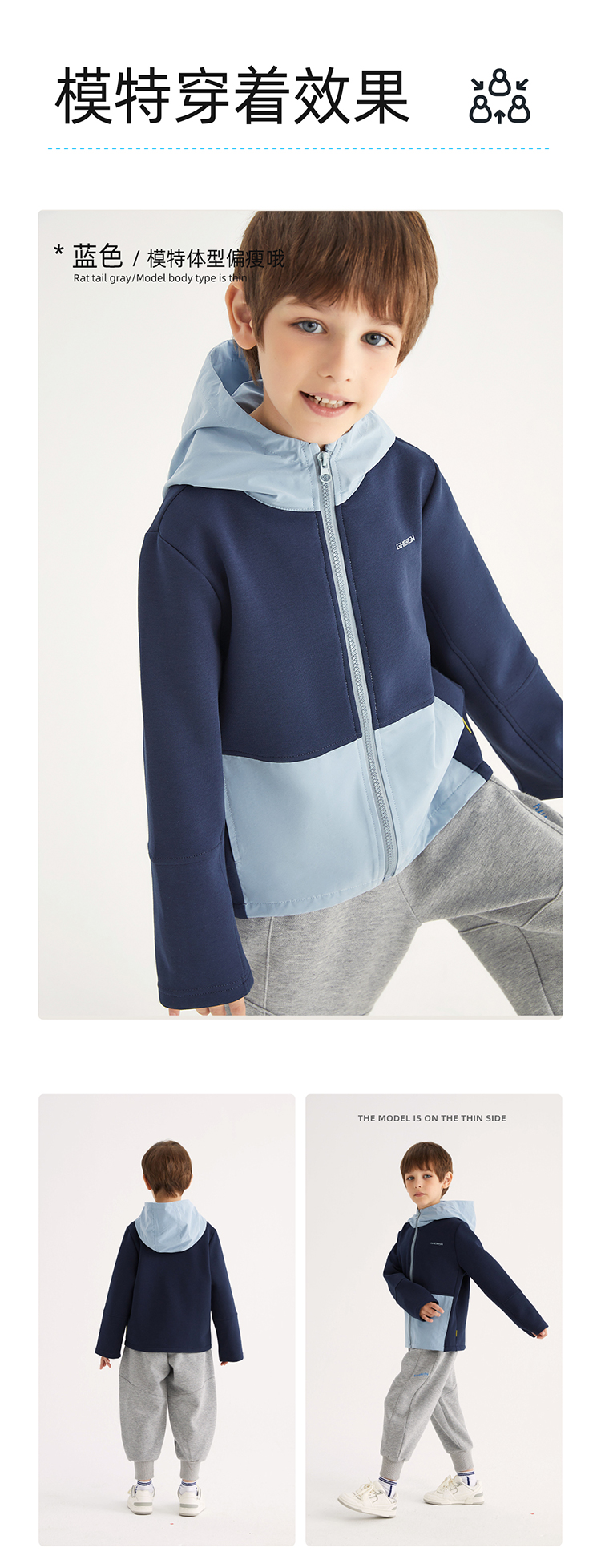 【100元任选2件】【轻暖又防风】儿童撞色拼接运动卫衣连帽外套PQWT2308