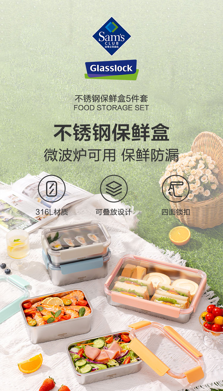 【自提】M Glasslock316L不锈钢保鲜盒5件组合
