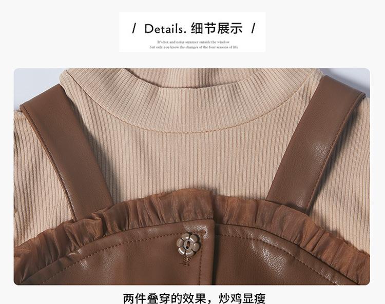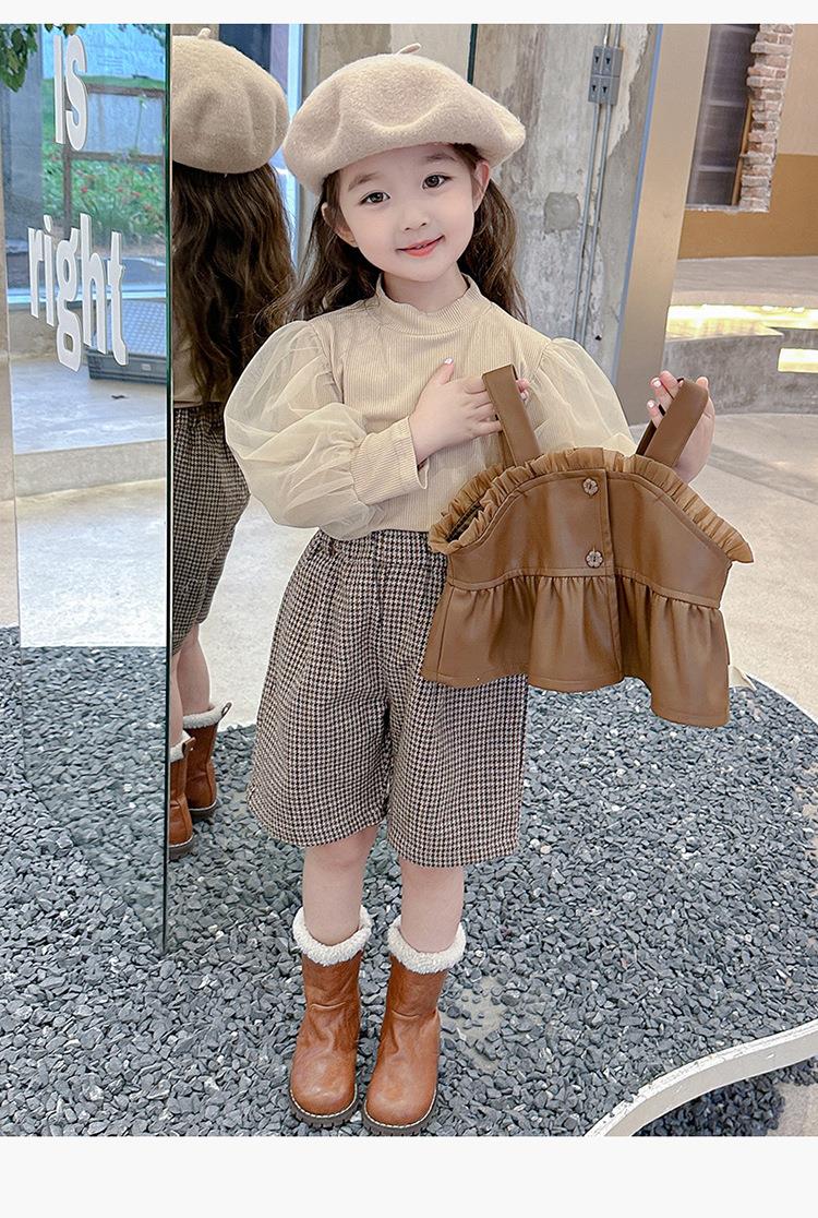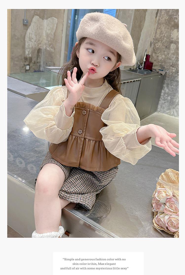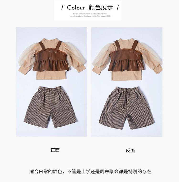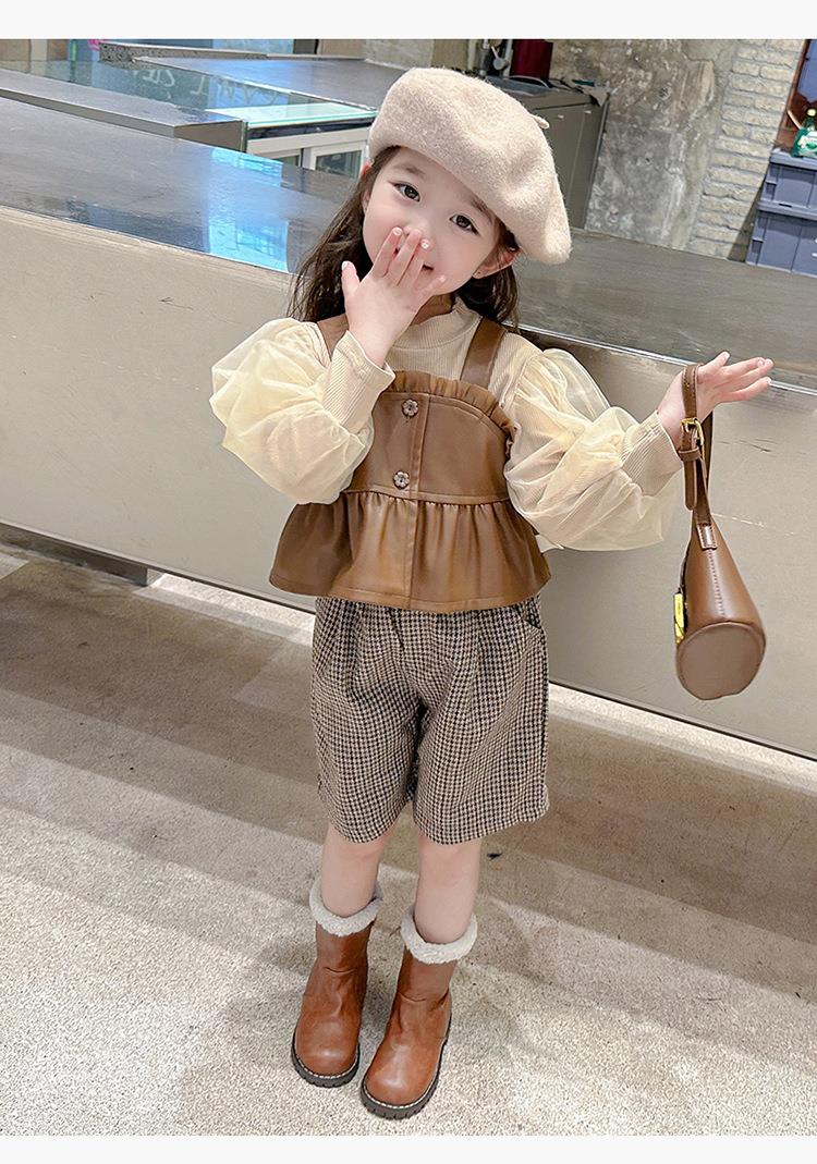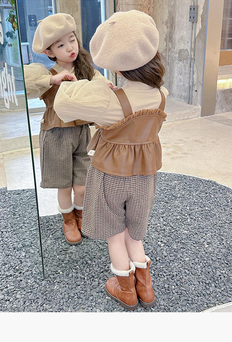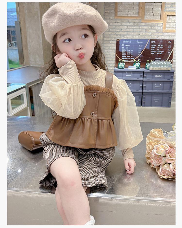 女童小香风皮马甲三件套2024年春季新款韩版套装童装
