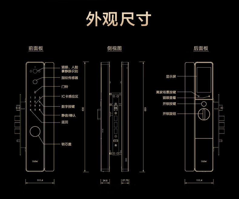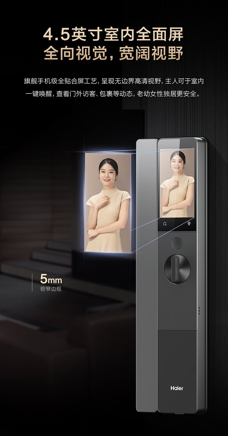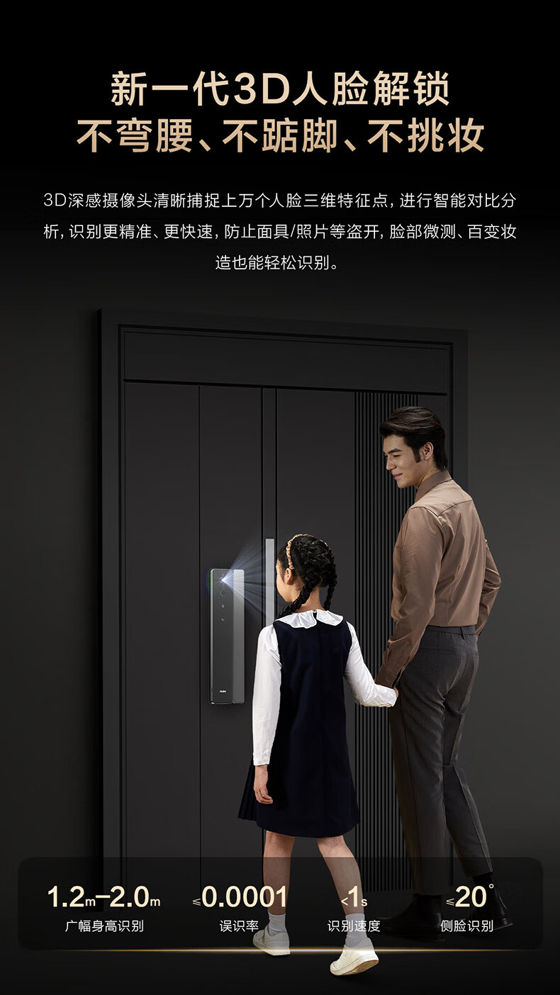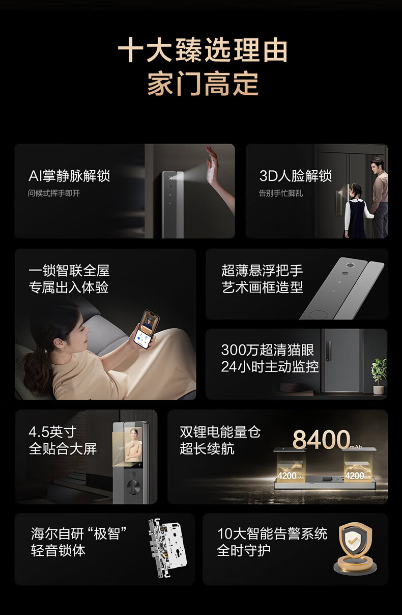 海尔(Haier)掌静脉人脸识别智能门锁可视猫眼密码锁指纹锁电子锁Q600