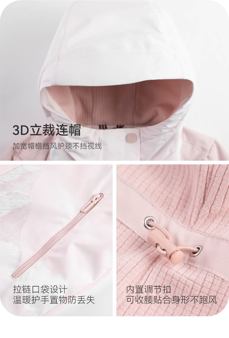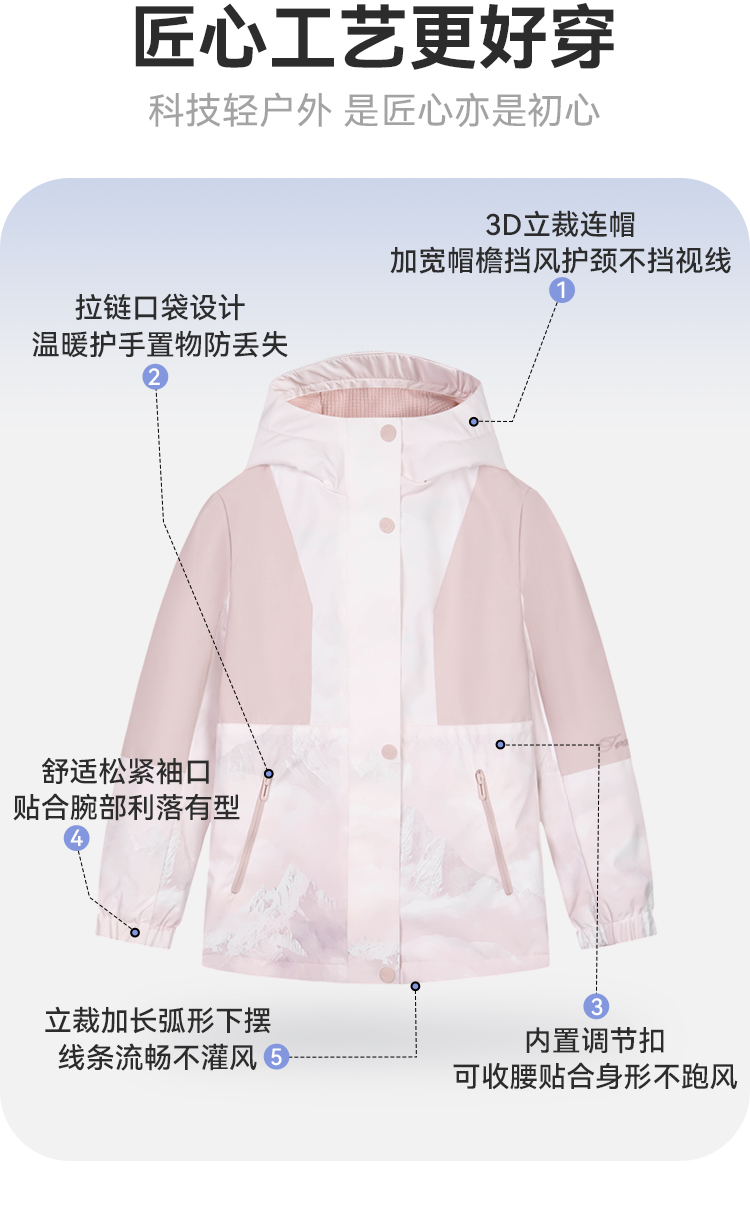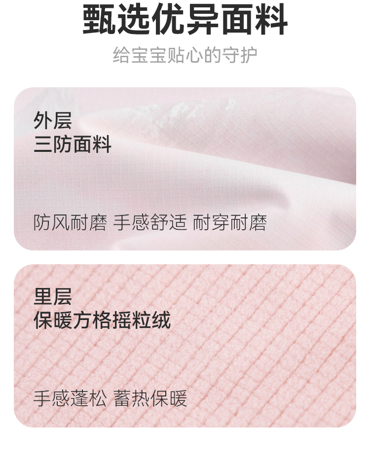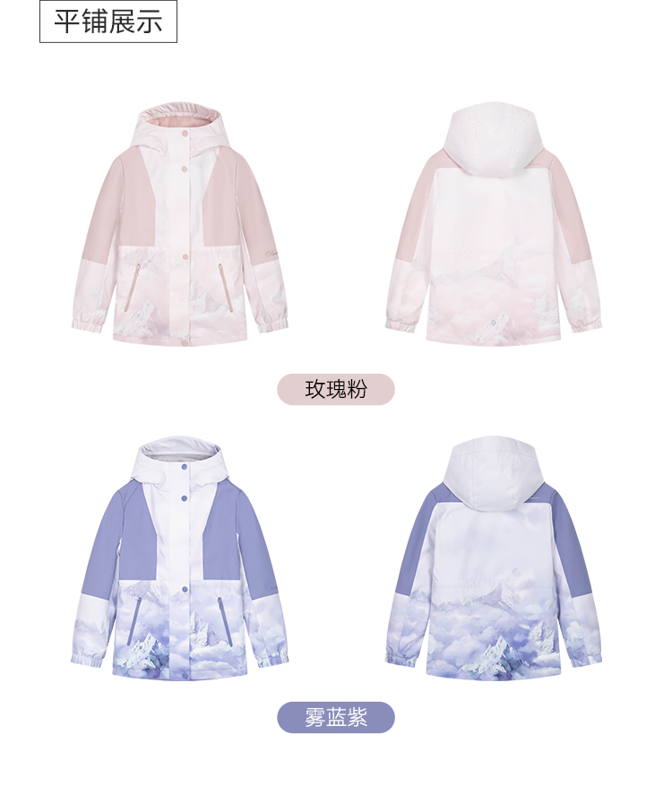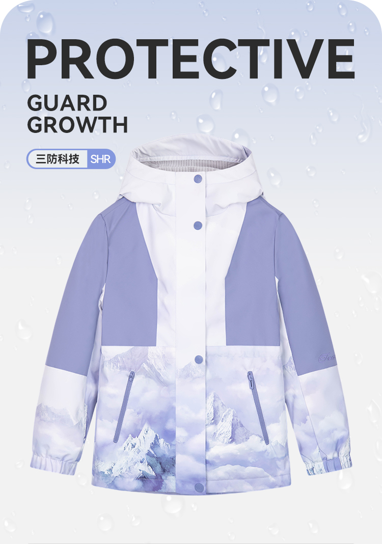 水孩儿童装秋冬新款女童三防加绒外套儿童时尚拼色印花上衣