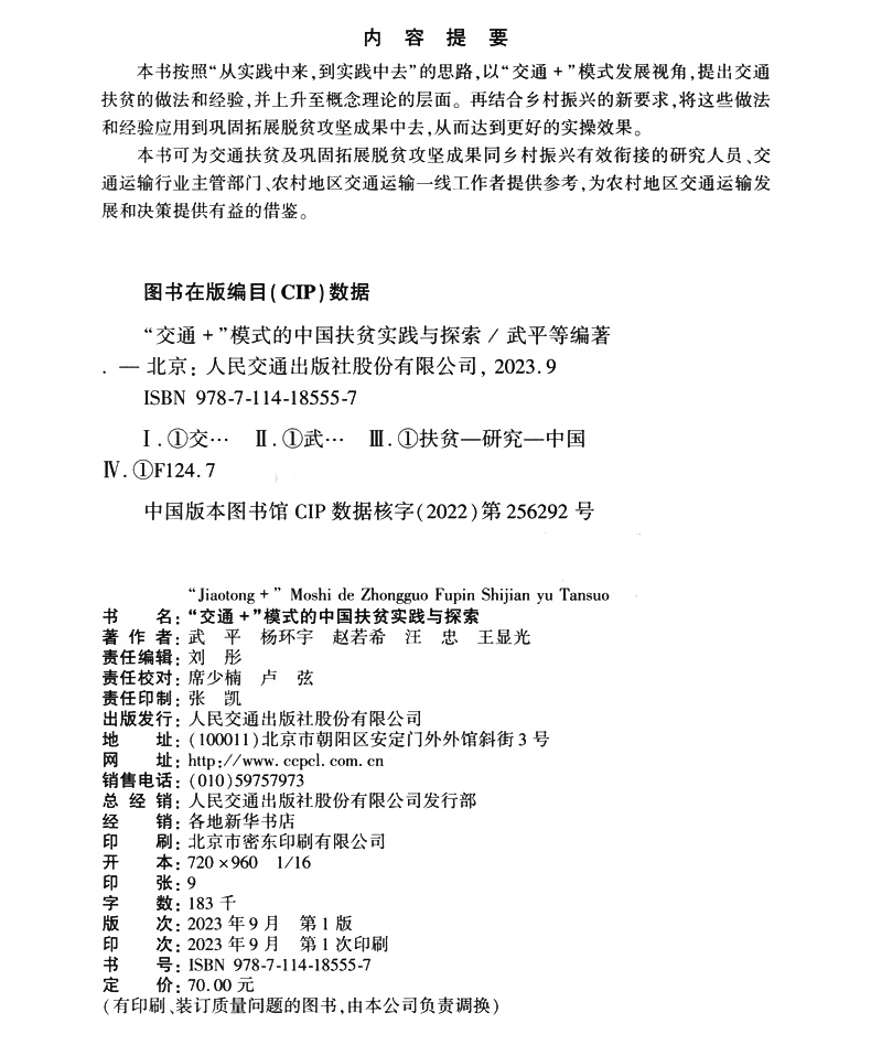 书名:“交通+”模式的中国扶贫实践与探索
