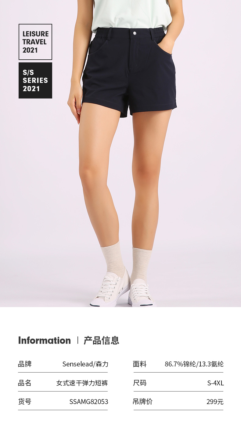 Senselead森力/女式速干弹力中裤(速干短裤) SSAMG82053