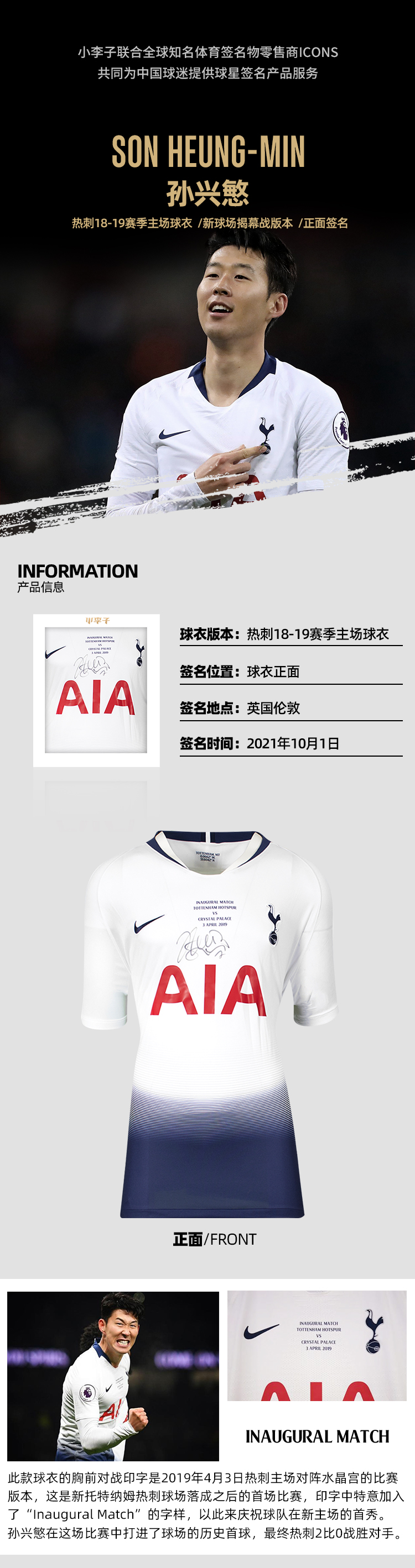 孙兴慜亲签热刺18-19赛季主场签名球衣含证书TB1220
