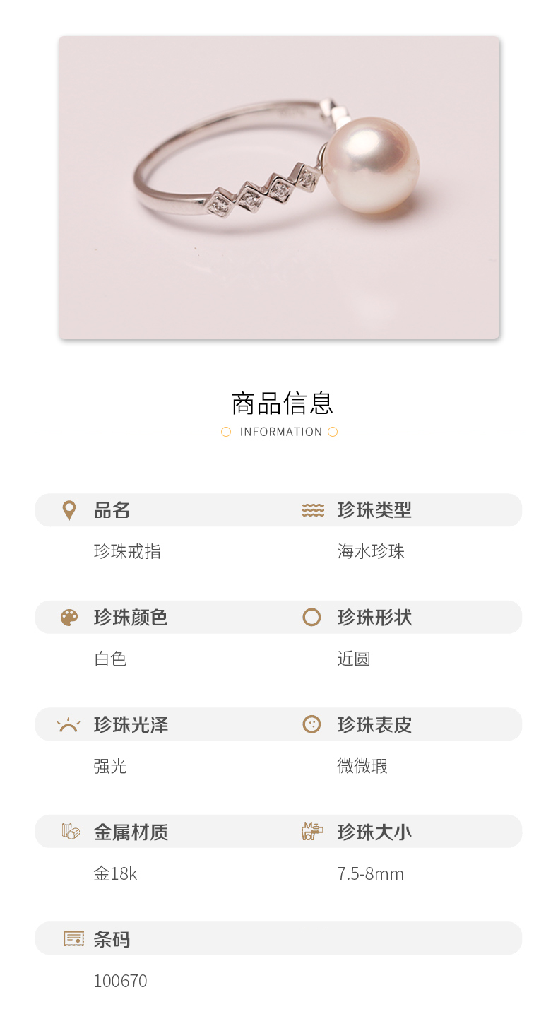 美裕 18K金淡水珍珠耳钉10-11mm 108303 W