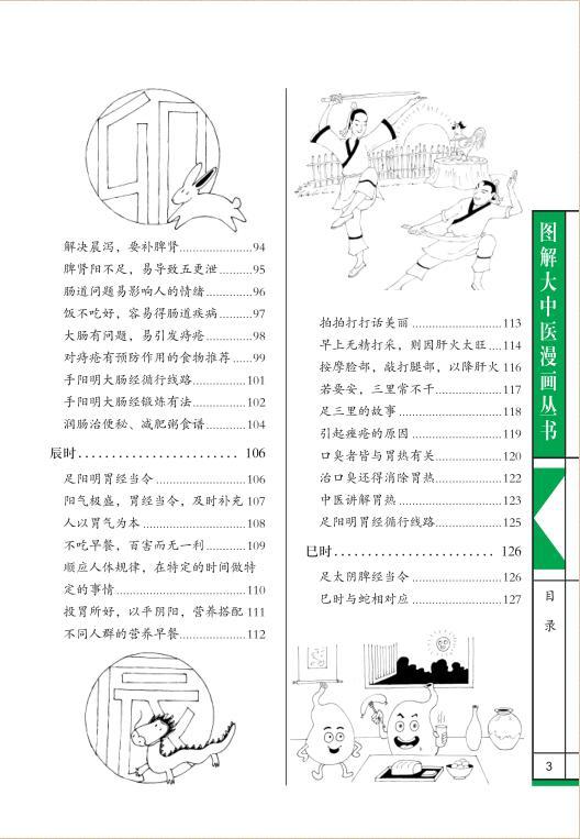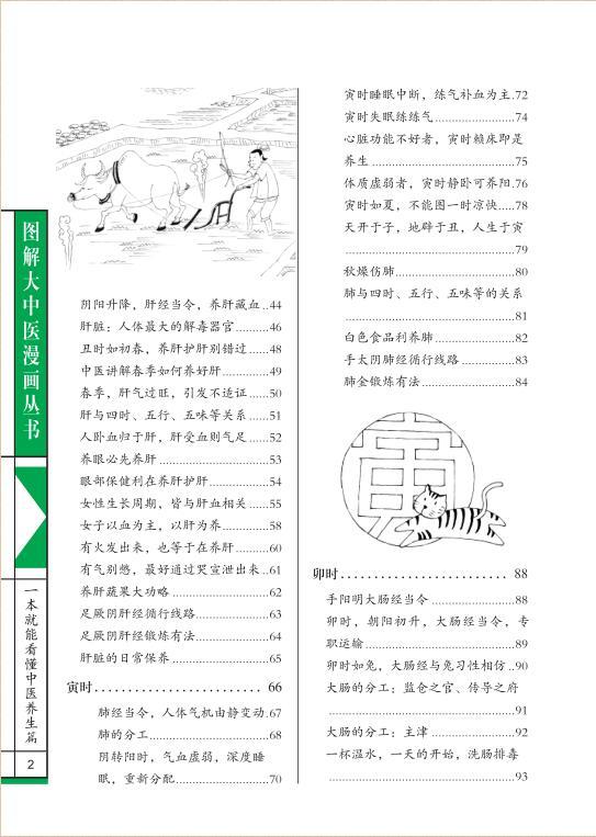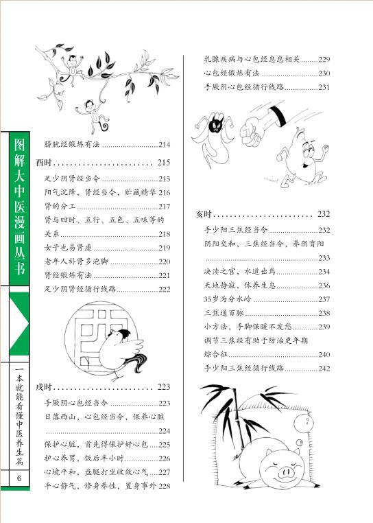 本书分为两大部分,包括中医养生总论、十二时辰养生等内容。第一部分为中医养生的概述,内容包括遵循四时阴阳好养生、中医的整体观、中医养生的最高境界。第二部分,具体讲述了子时、丑时、寅时、卯时、辰时、巳时、午时、未时、申时、酉时、戌时、亥时等十二时辰的养生方法、注意事项等内容。本书语言深入浅出,漫画生动有趣,使本书集知识性、趣味性、实用性为一体,让普通读者也能轻轻松松读懂中医,为中医初学者提供了全新的阅读和学习体验,具有很高的出版价值。