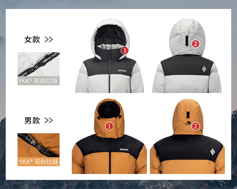 黑冰户外防风保暖羽绒服男女同款加厚700蓬鹅绒外套8536