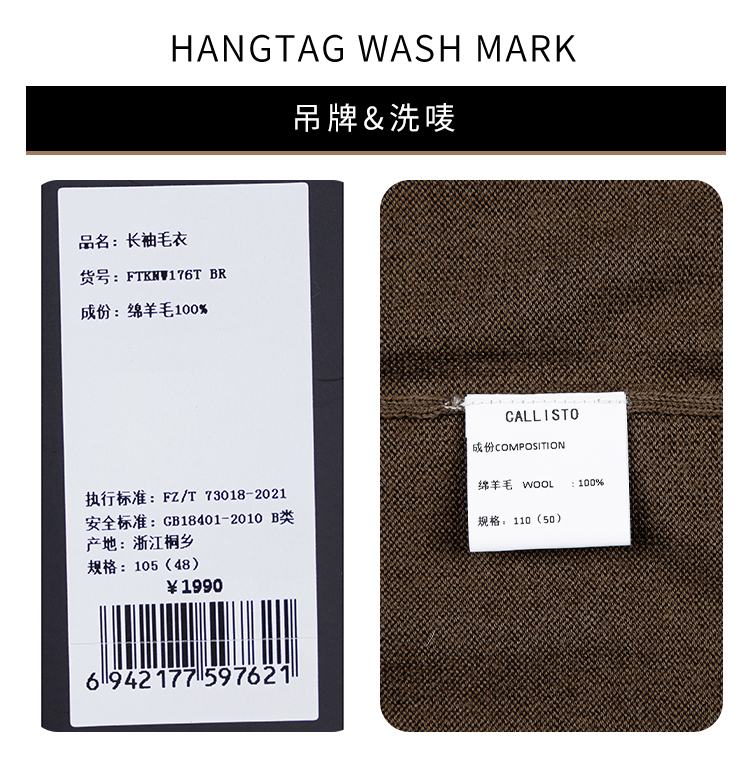 callisto咖啡色绵羊毛长袖毛衣