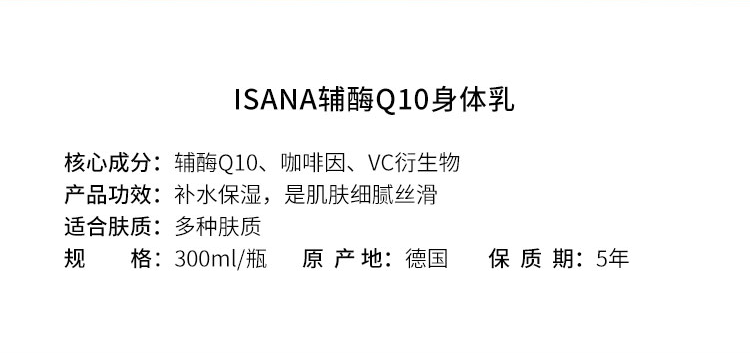 【郑州保税】德国ISANA辅酶Q10身体乳300ml/瓶*2