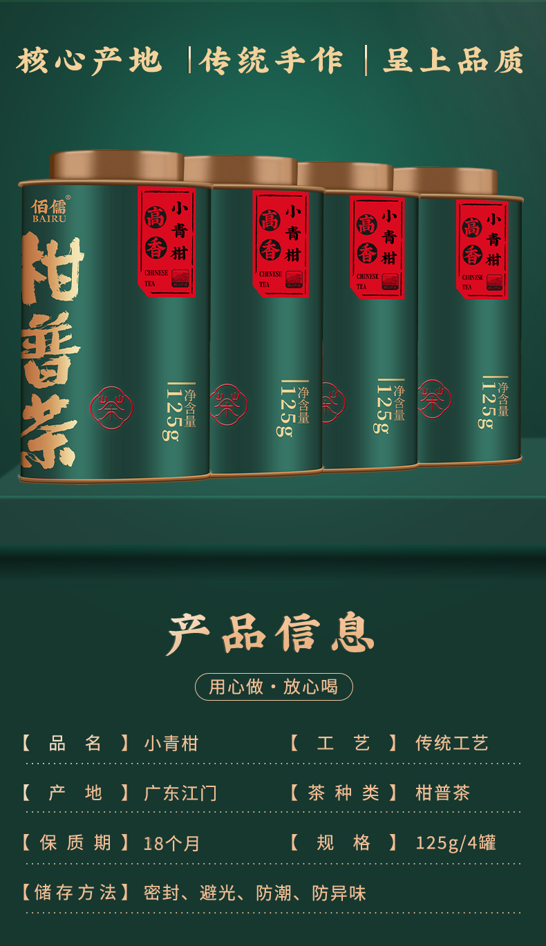 佰儒 正宗小青柑普洱茶茶叶 普洱云南熟茶茶叶罐装500g
