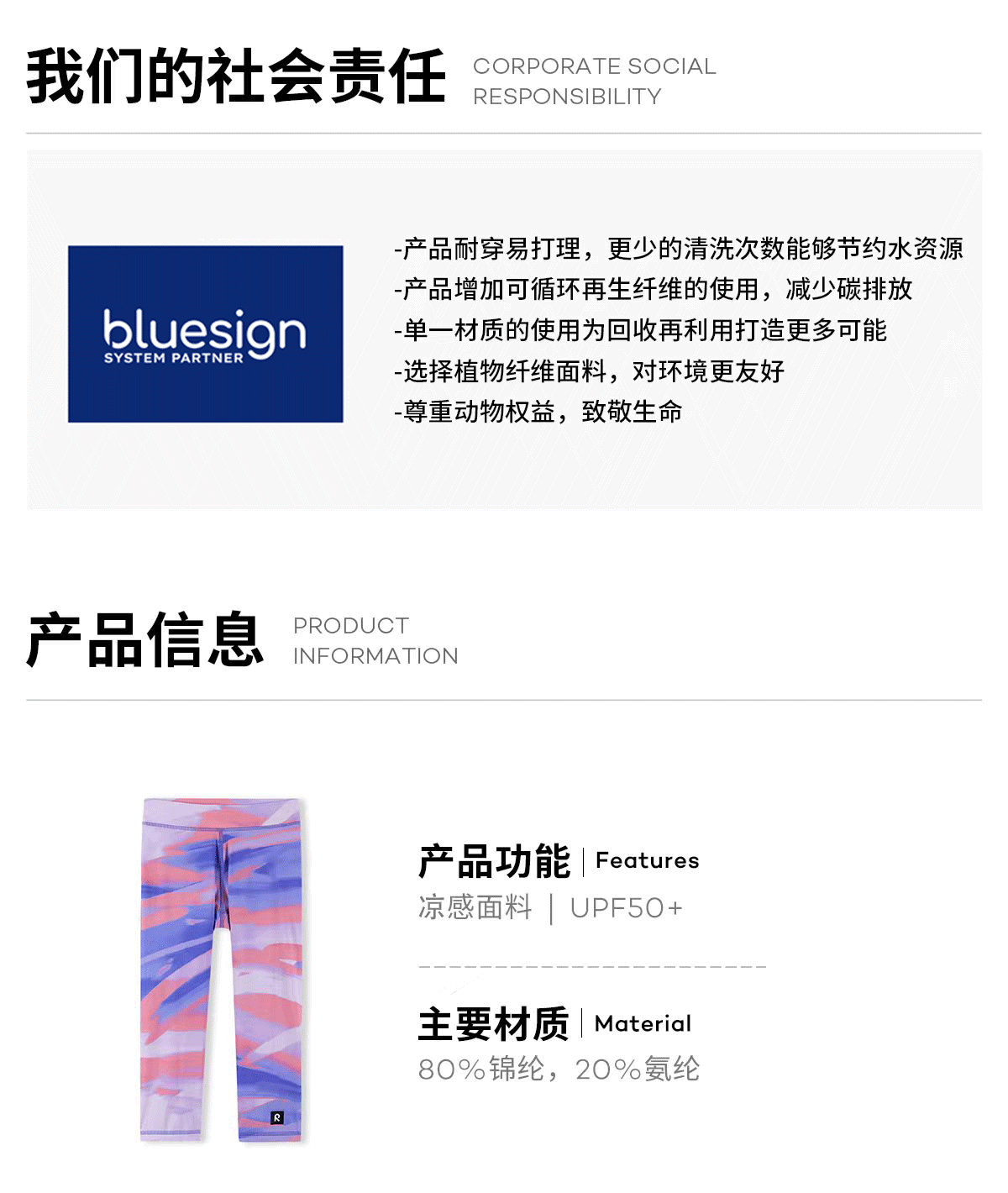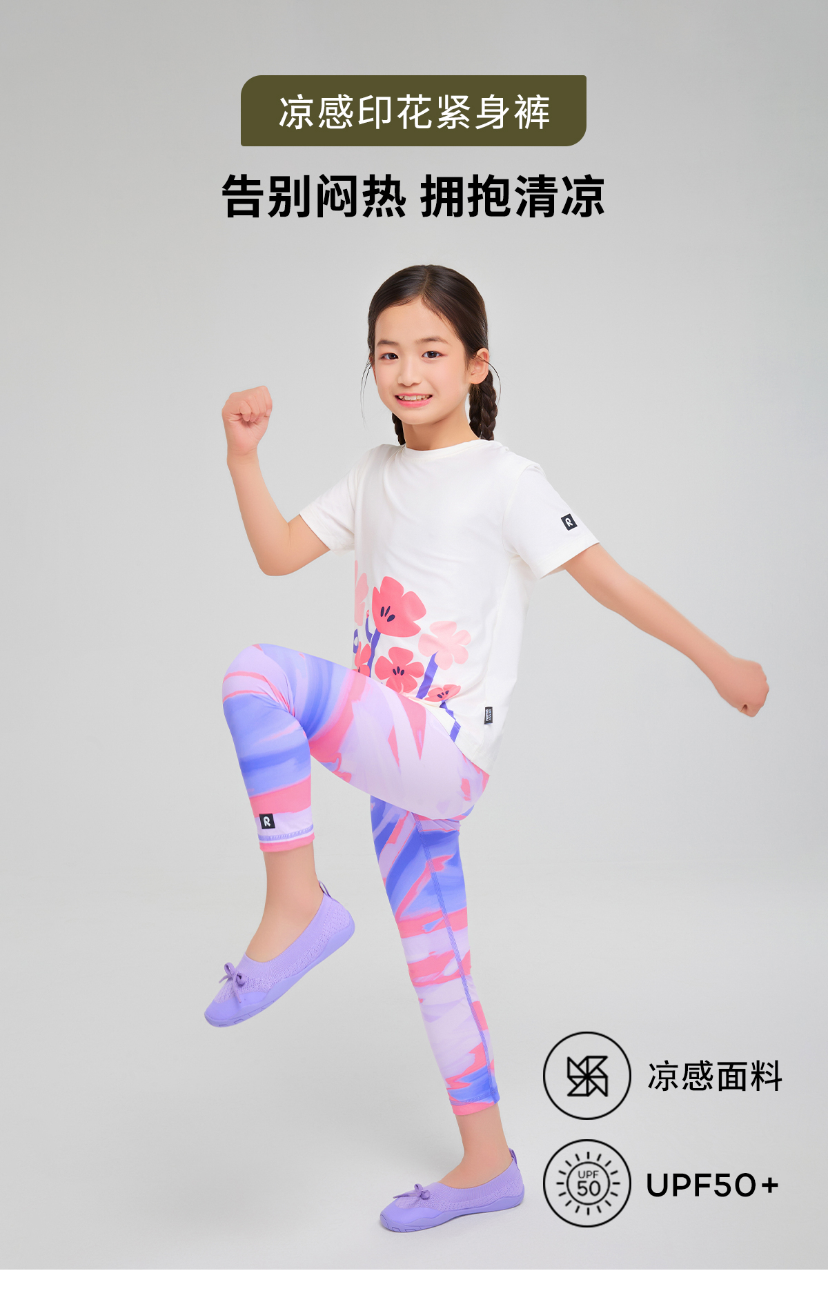 芬兰Reima2025春夏新款女孩大童防晒凉感针织运动弹力舒适紧身裤