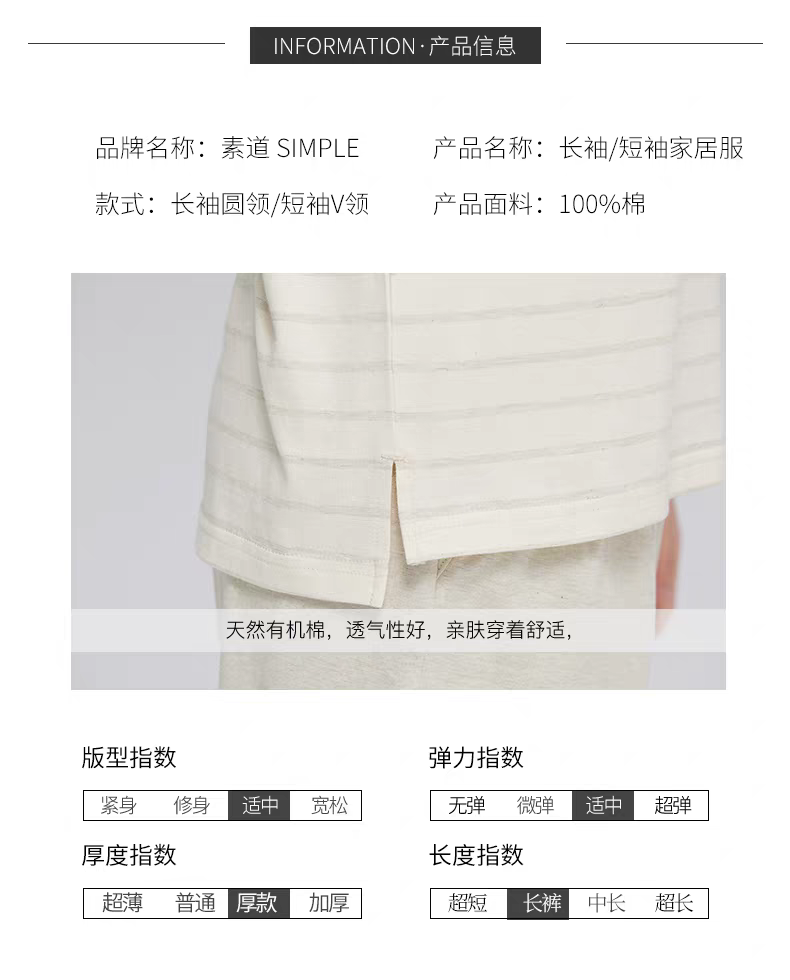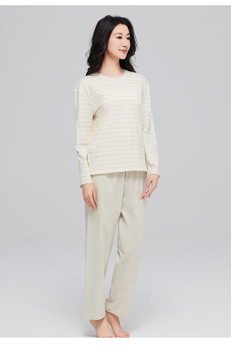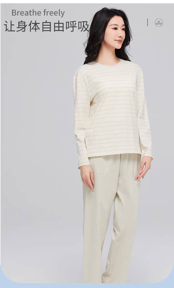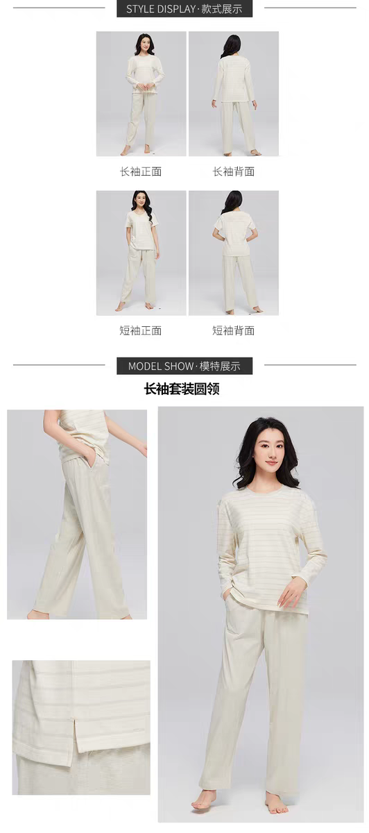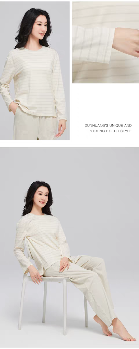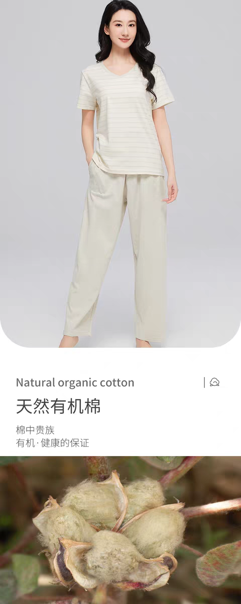 【女士薄款短袖/长袖家居服】100%棉素道有机彩棉-女士混色(条纹)纯棉家居服套装(基地直发-申通包邮),来自敦煌,品牌:素道【合作生产,公平贸易】