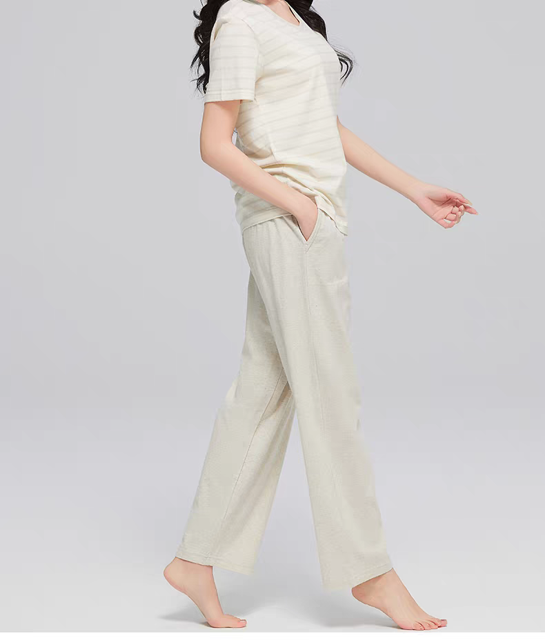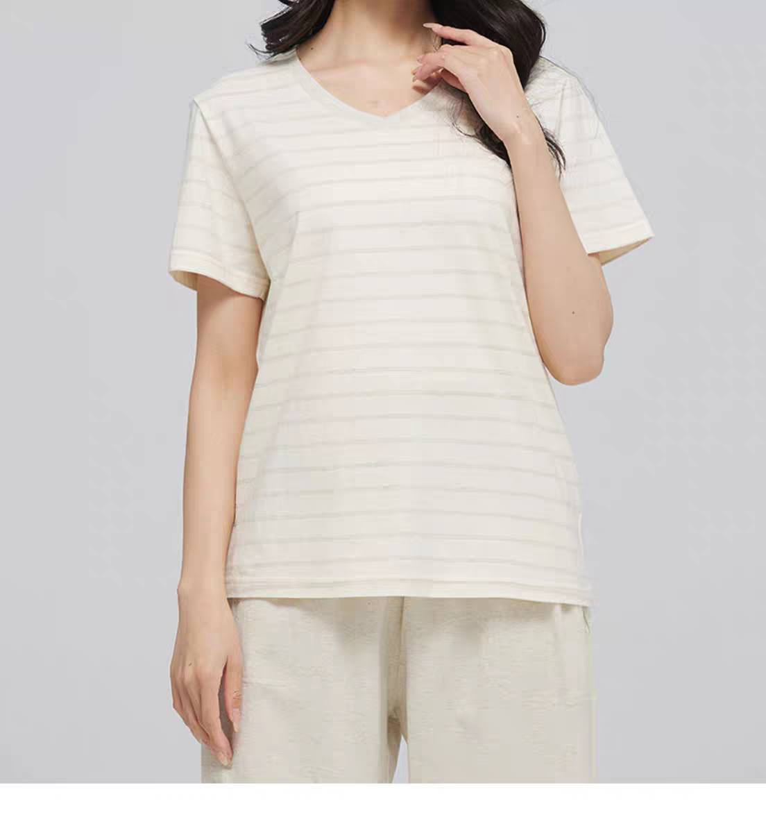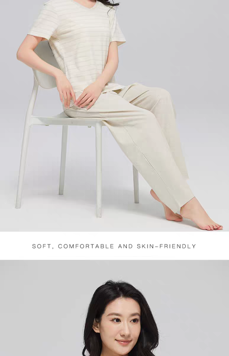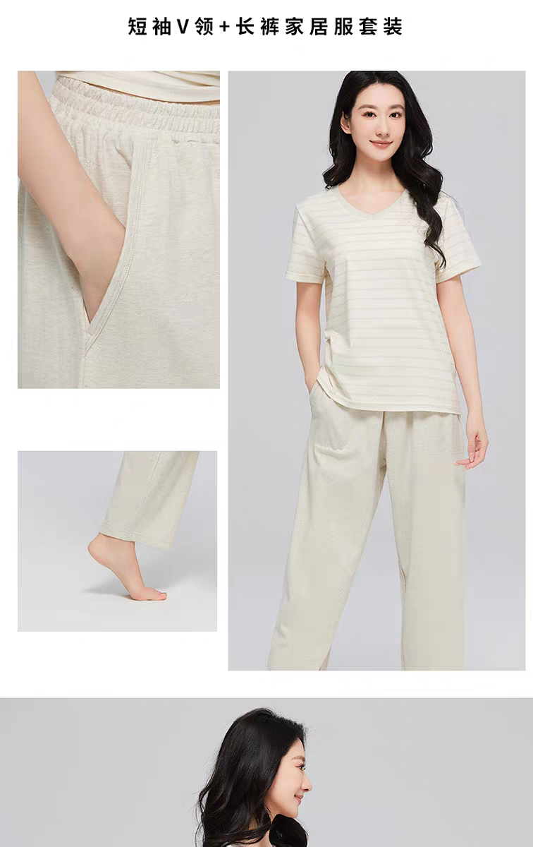 【女士薄款短袖/长袖家居服】100%棉素道有机彩棉-女士混色(条纹)纯棉家居服套装(基地直发-申通包邮),来自敦煌,品牌:素道【合作生产,公平贸易】