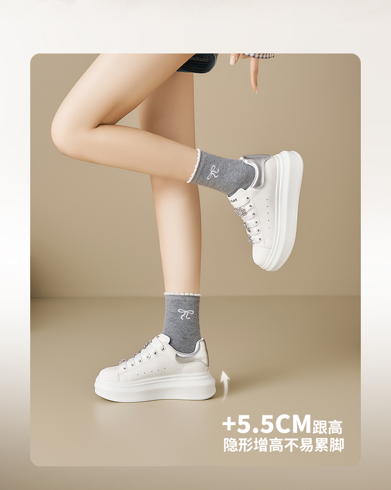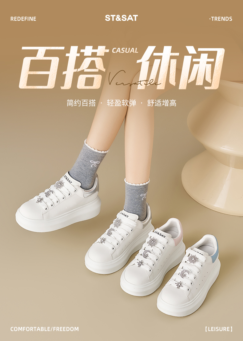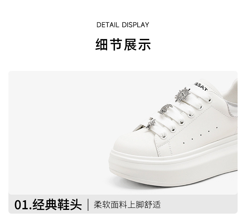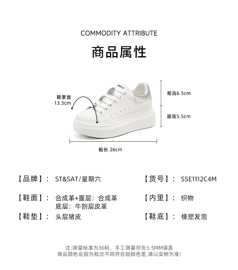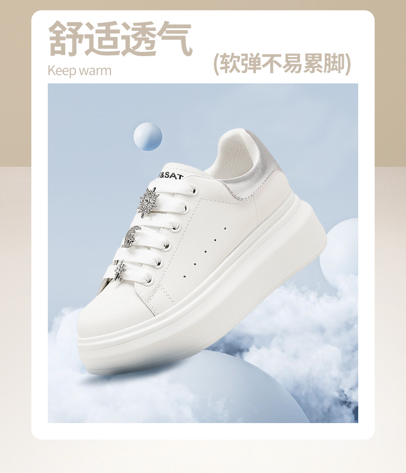 星期六26春新款时尚钻饰百搭厚底小白鞋SSE1112C4M
