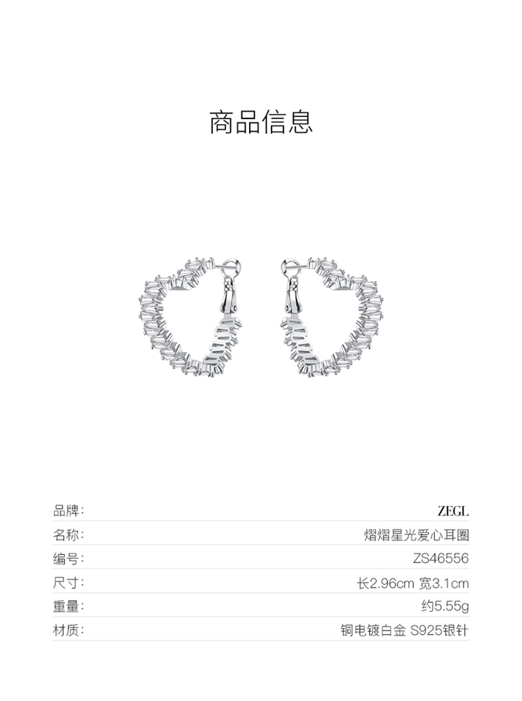 ZEGL法式爱心耳圈女2023新款爆款秋冬高级感耳环耳钉耳扣银针耳饰