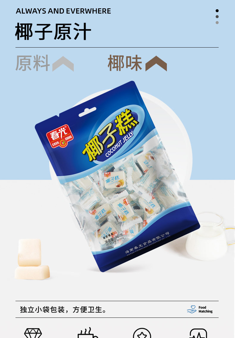 海南“著名手信品牌”春光食品,取材于海南椰子故乡,锁住北纬18°的新鲜美味。在这里,您能了解到春光食品旗舰店的最新优惠,享受优惠到不能说的价格。浓浓椰香,爱上春光!