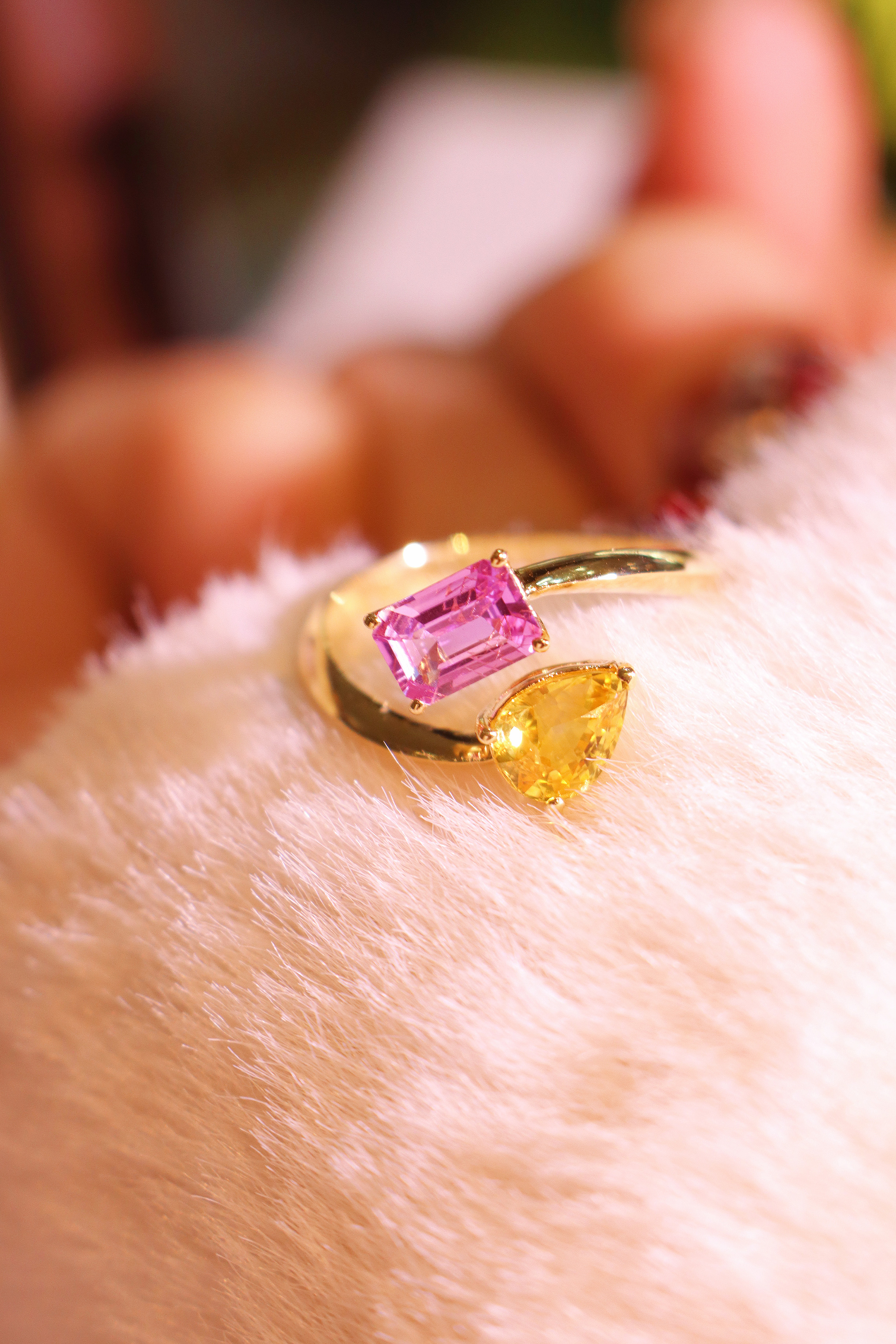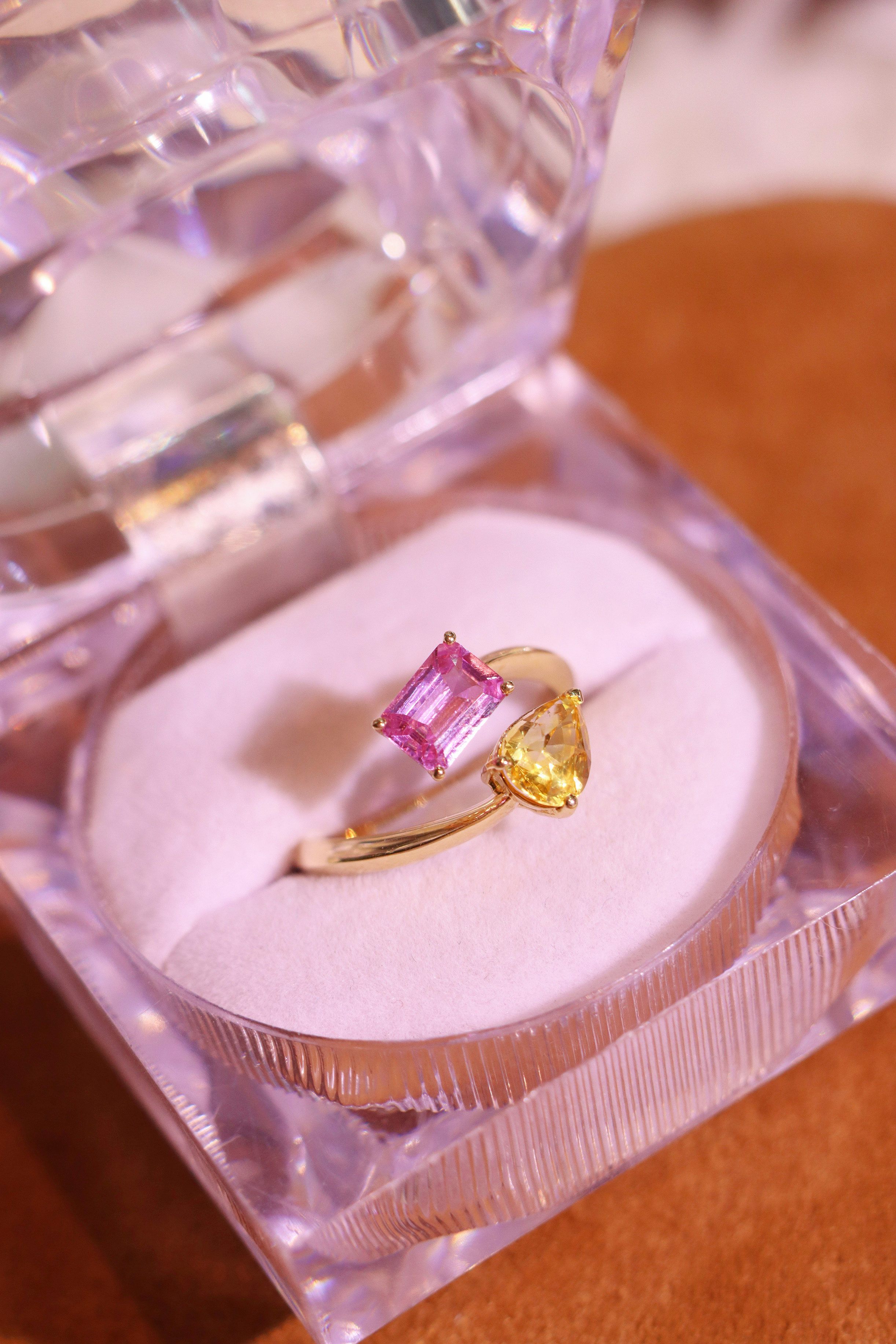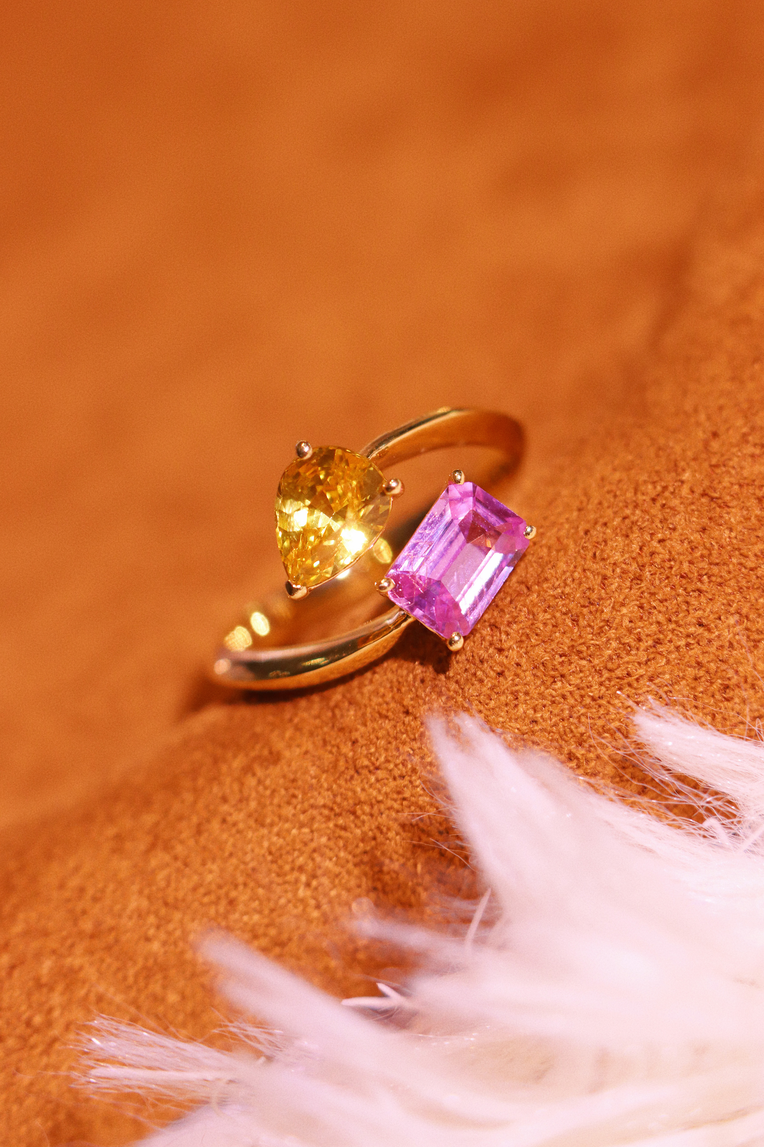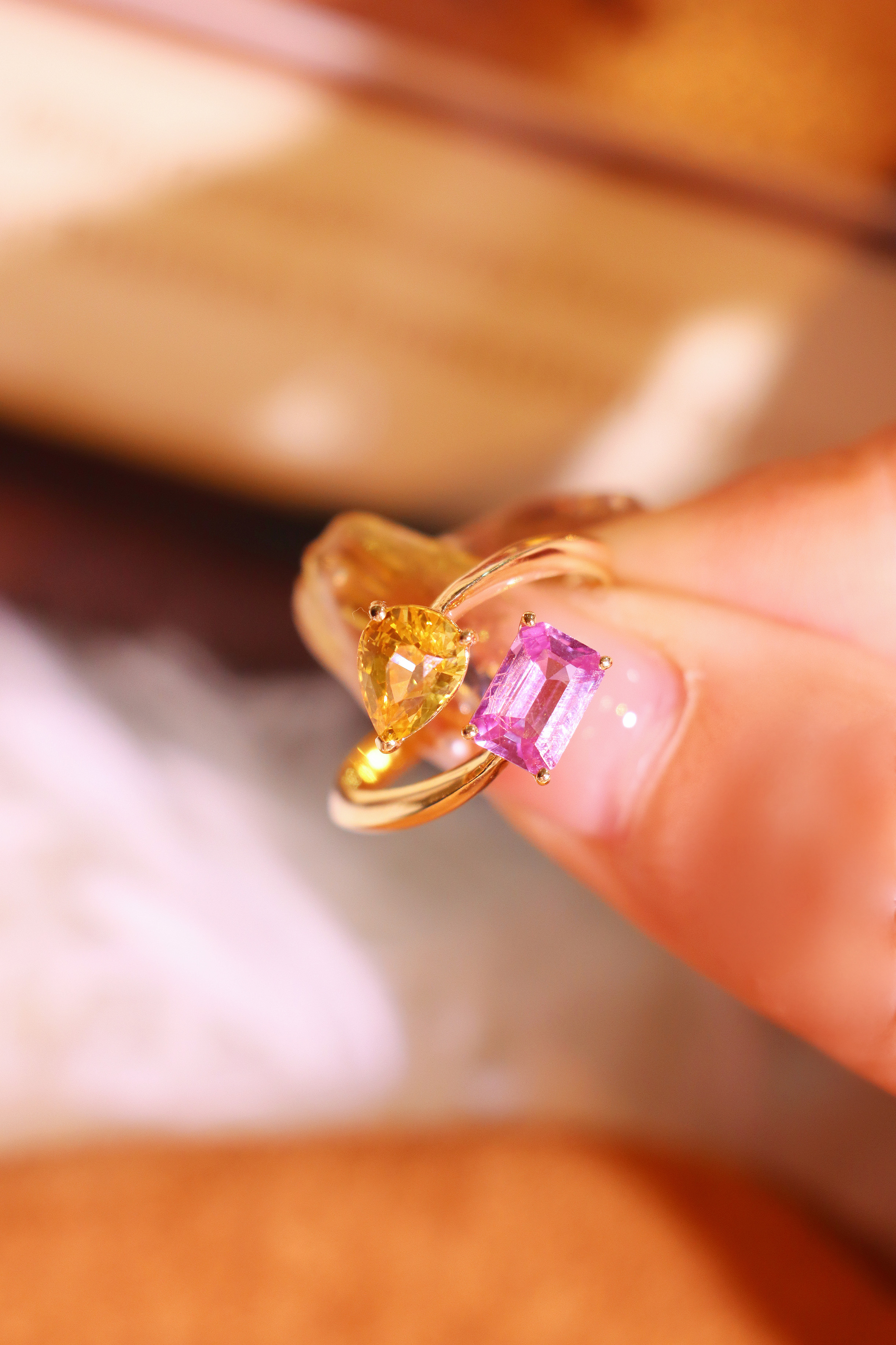 双石款,分别是斯里兰卡黄色蓝宝石和粉色蓝宝石的结合。