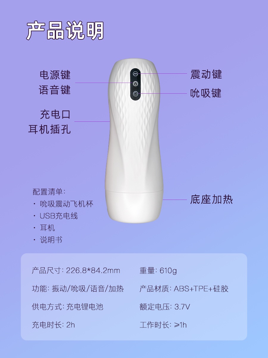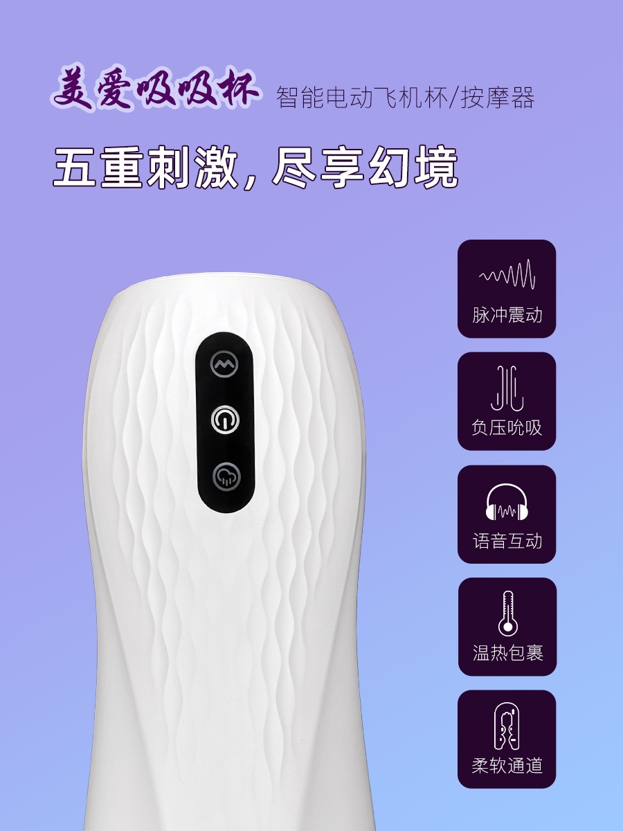 【美爱吸吸杯】智能电动吮吸震动飞机杯 真人语音 预热加温 增硬降敏训练 送润滑液
