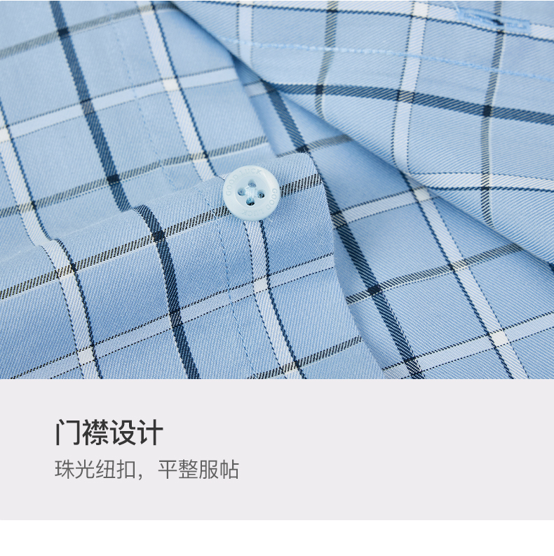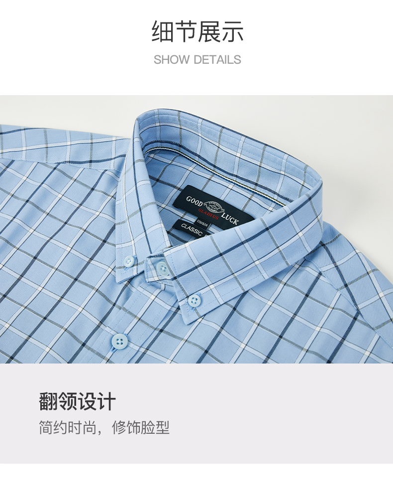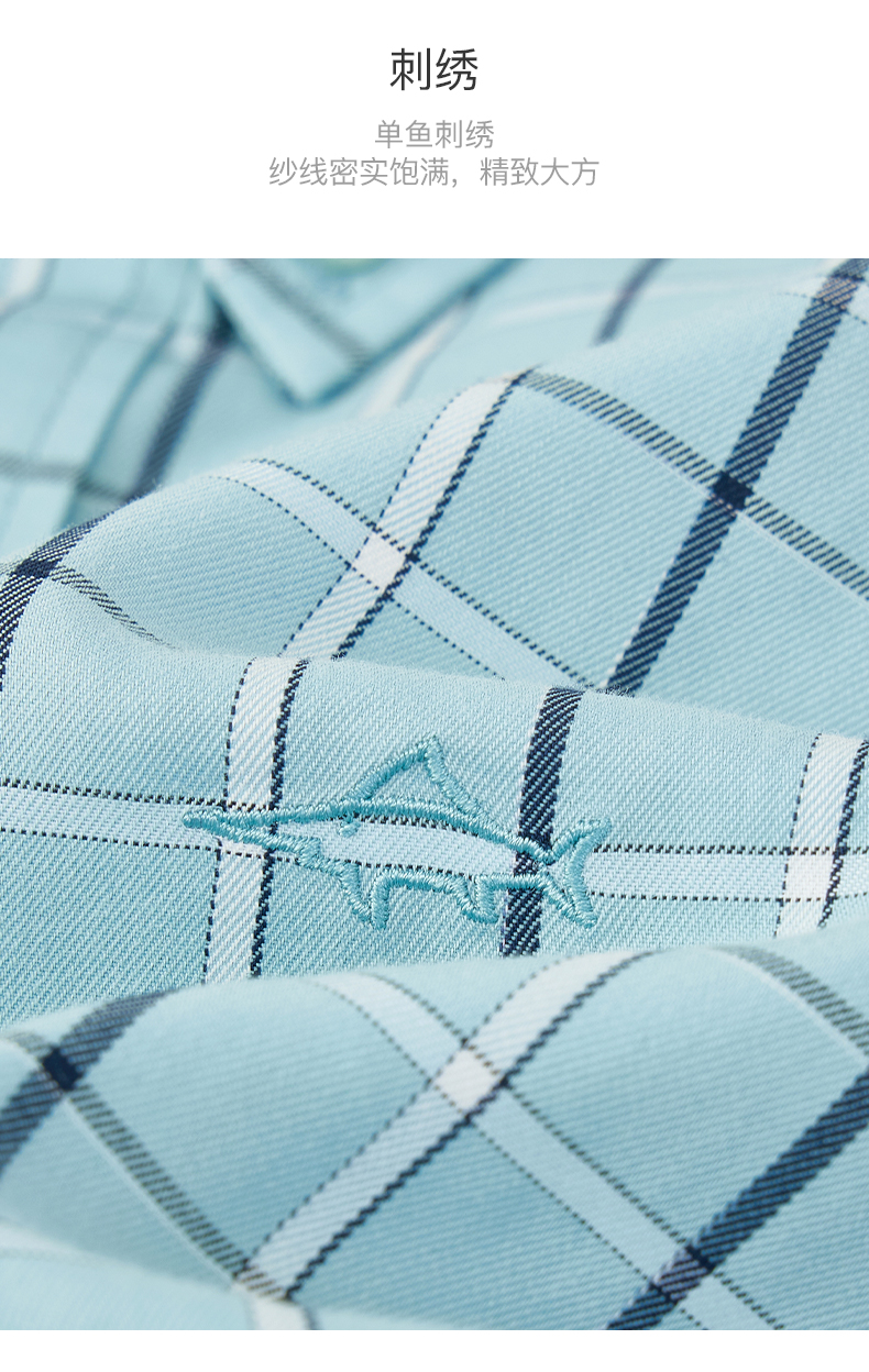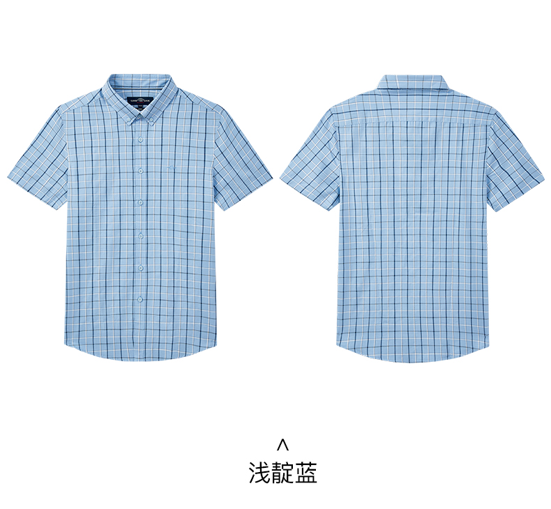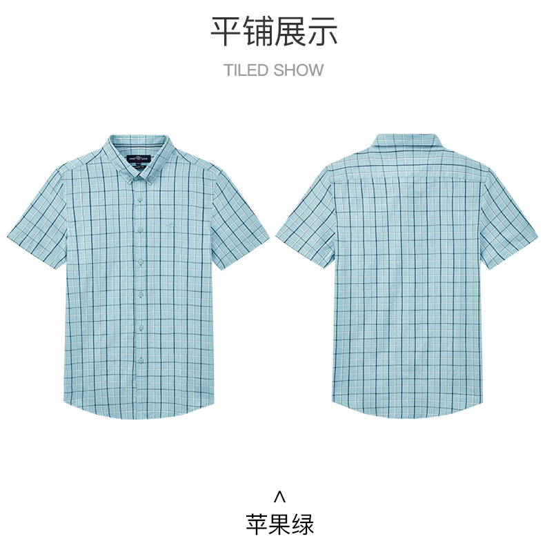 德鲨夏新款短袖格子衬衫男青年时尚休闲上衣男装打底衬衣
