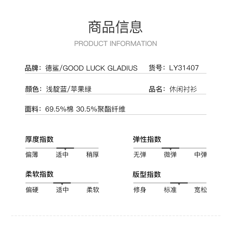 GOOD LUCK GLADIUS品牌由“浙江德鲨服饰有限公司”引进中国市场,经过多年发展,凭借完善的终端形象,规范化的销售管理,迅速赢得消费者的认可,引领国内消费流行,是成功人士首选男装品牌。