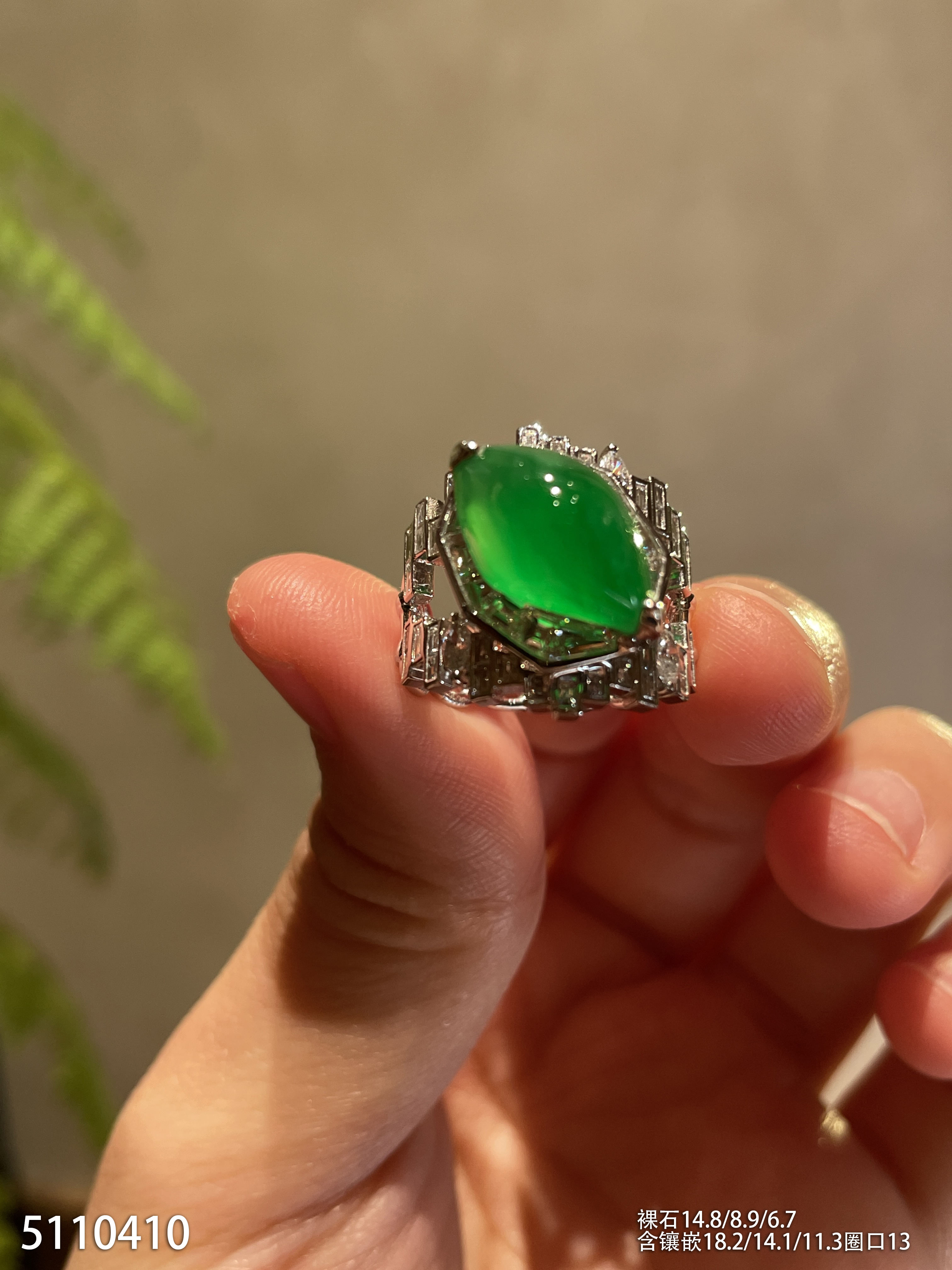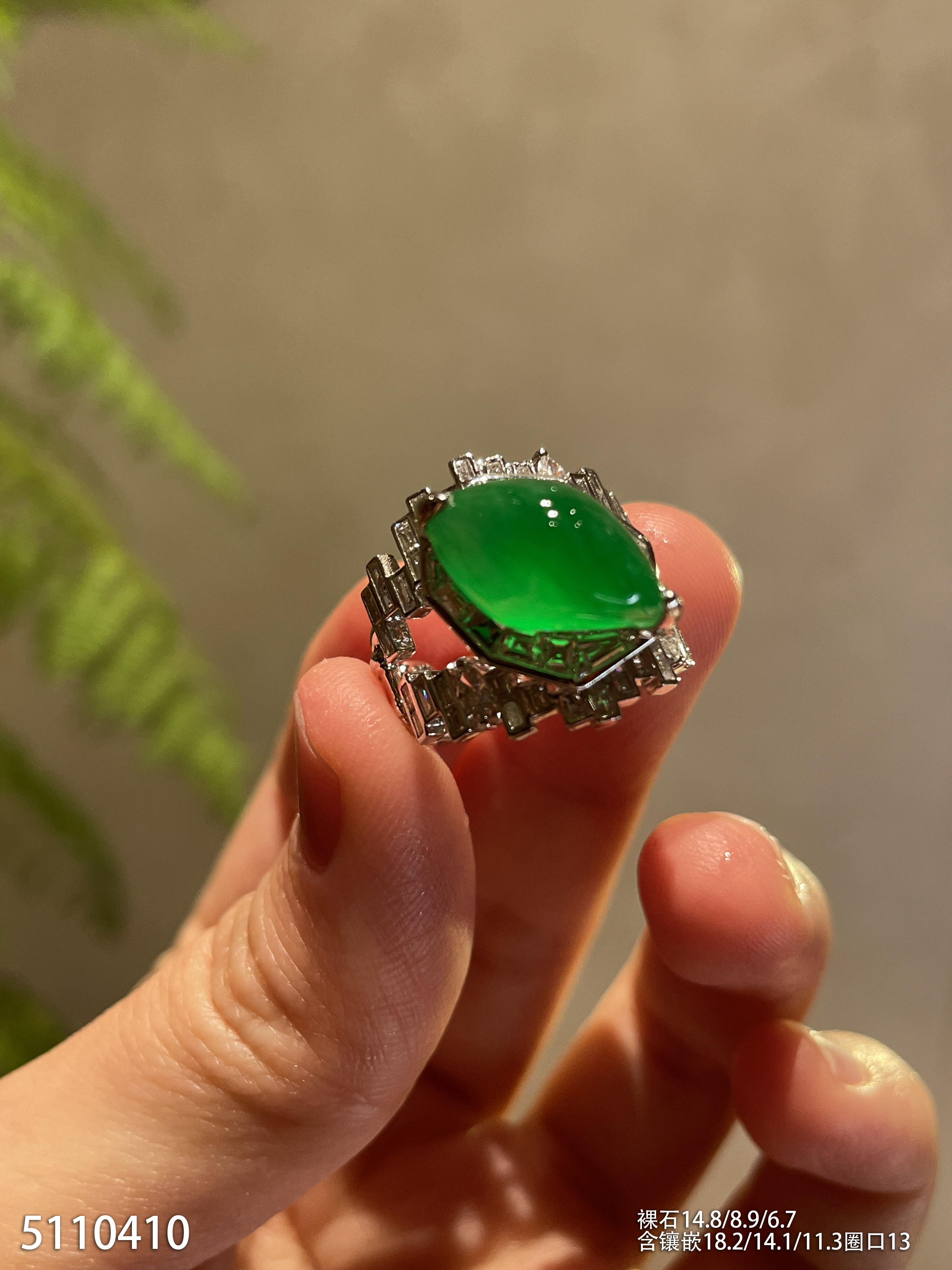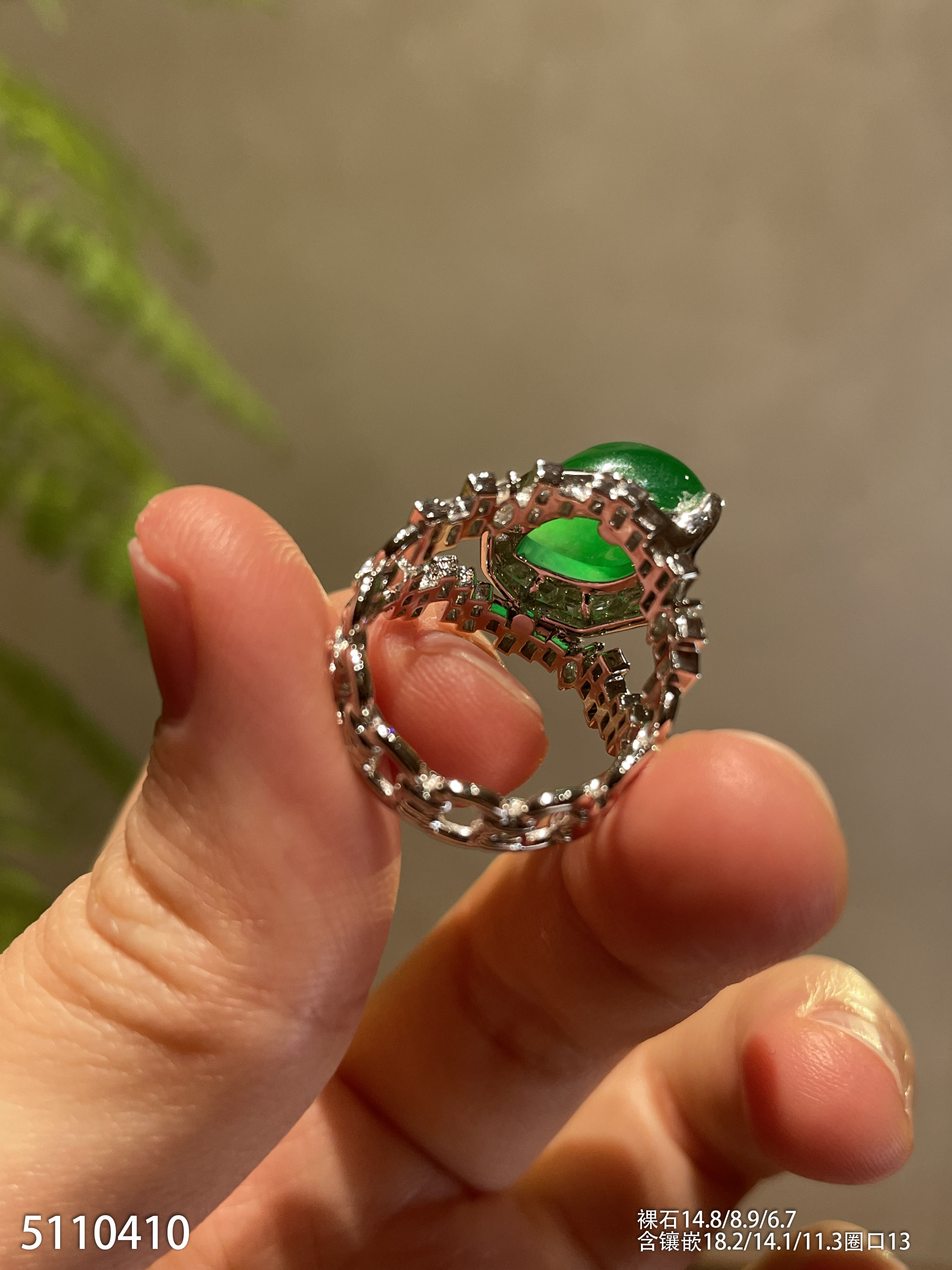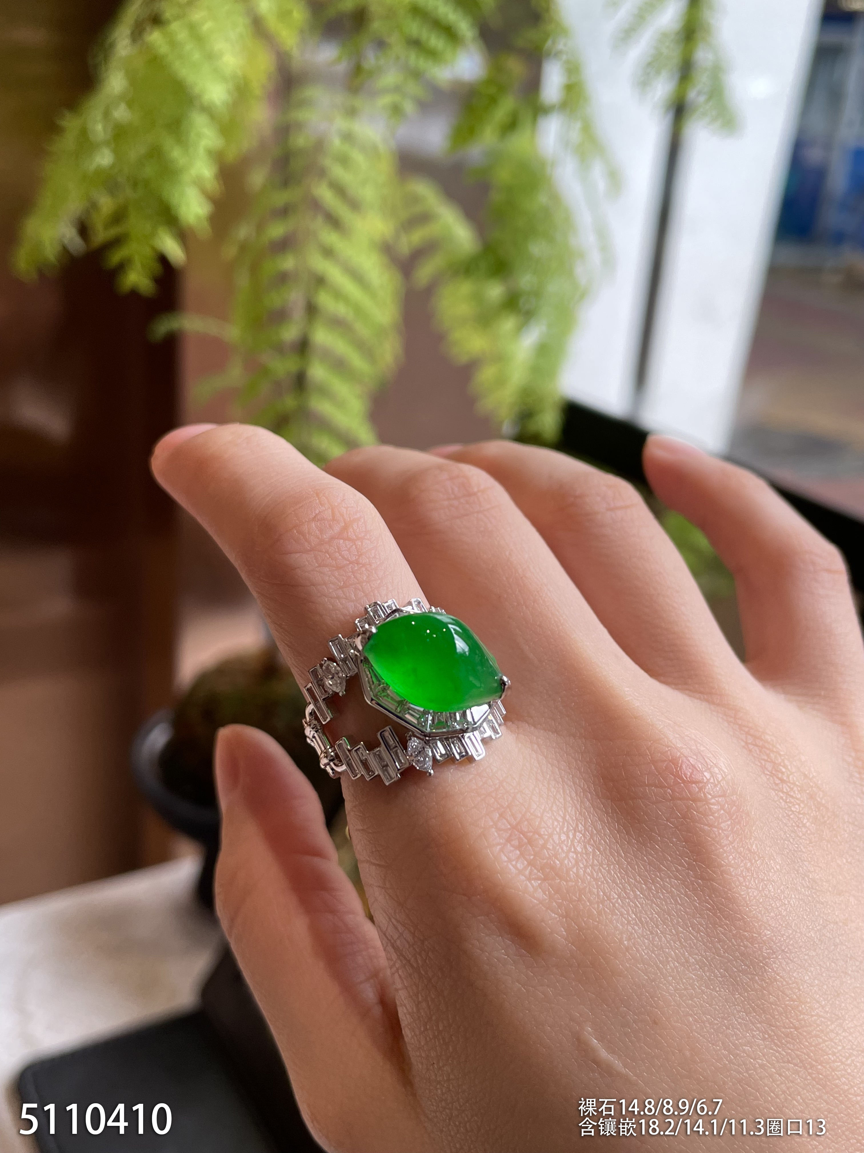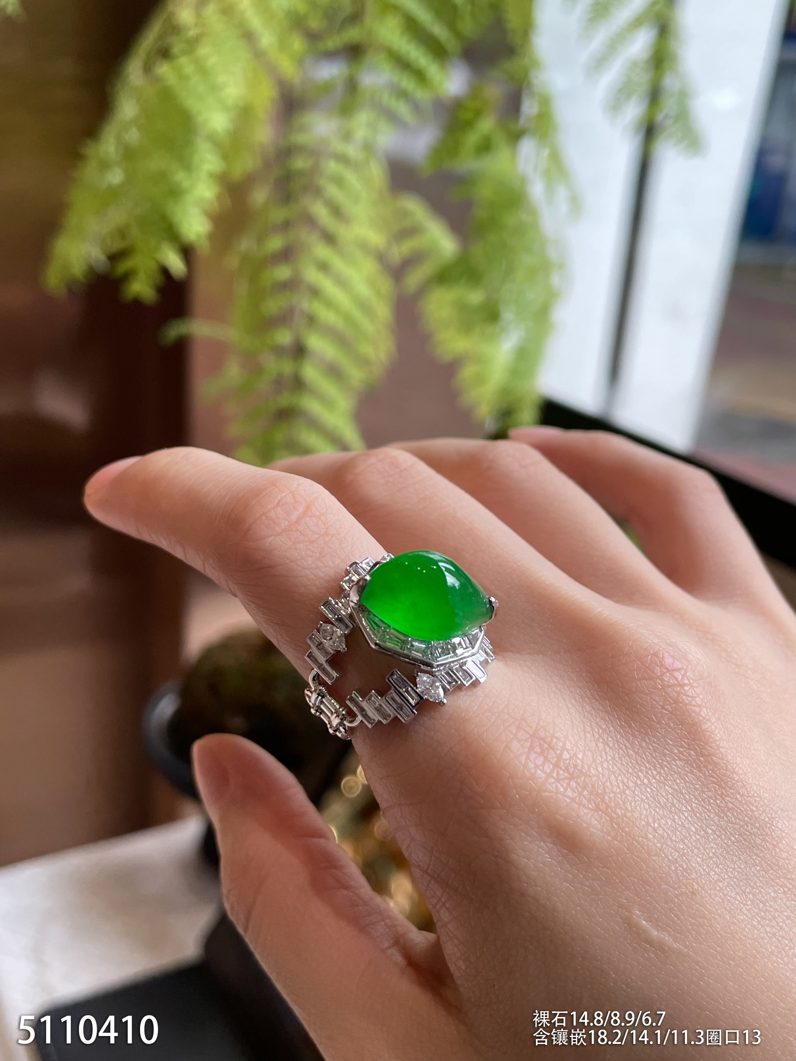 玻璃种艳绿随形戒指【5110410】具体价格微信咨询