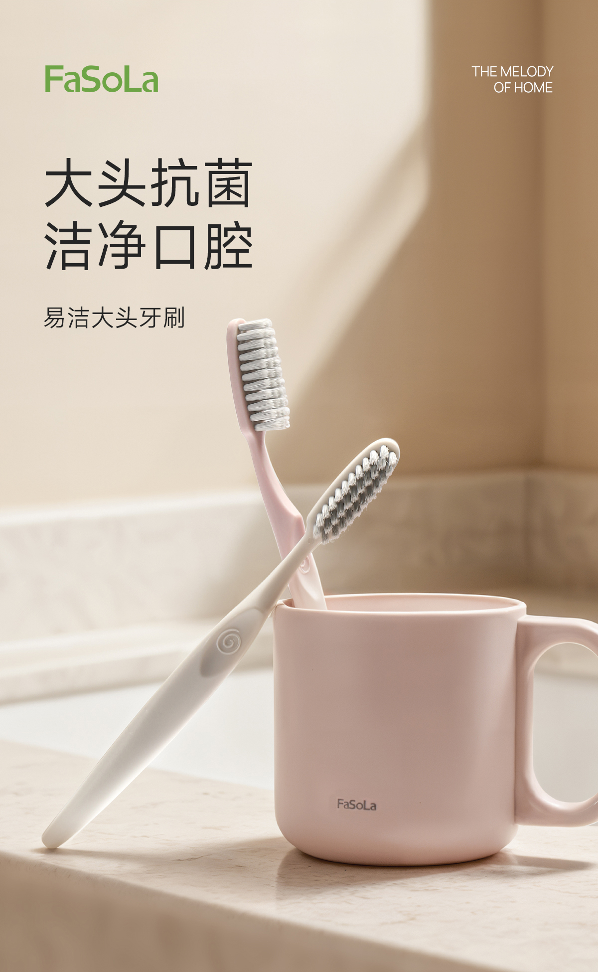 FaSoLa牙刷大头软毛成人家用情侣女生可爱韩式牙刷高颜值易洁大头牙刷