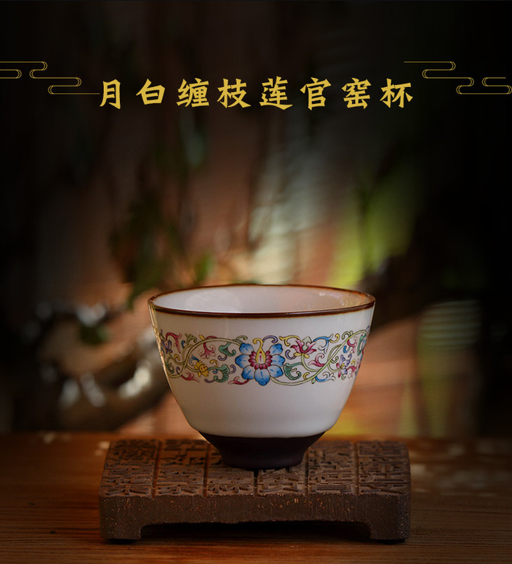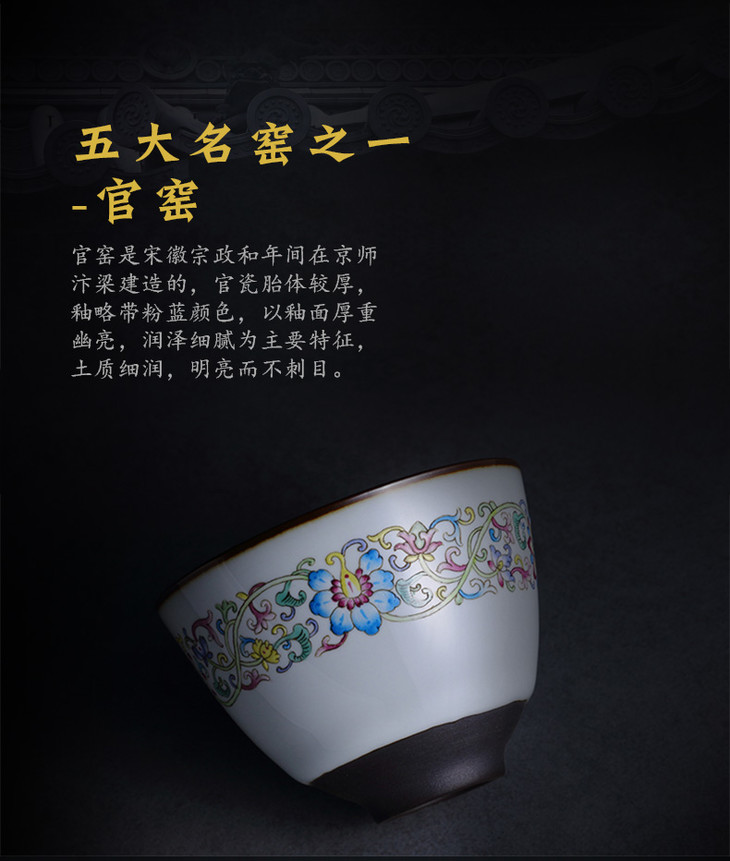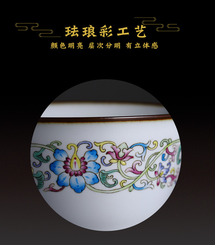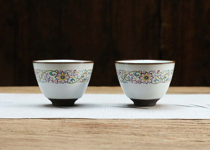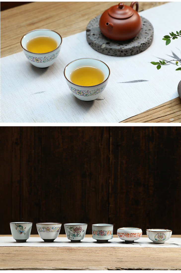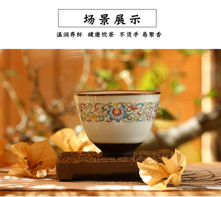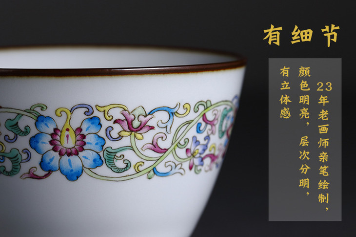 功夫茶具.珐琅彩主人杯单杯.手绘粉彩太阳花图案