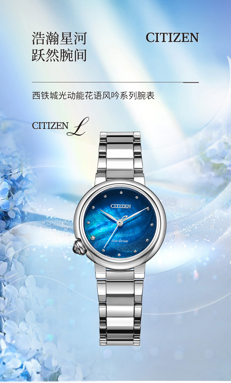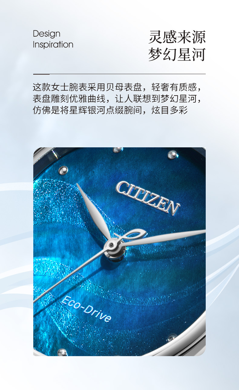西铁城日本官方正品天然贝母表盘时尚光动能女表EM0910-80D
