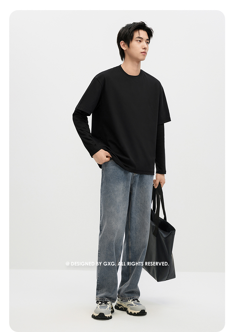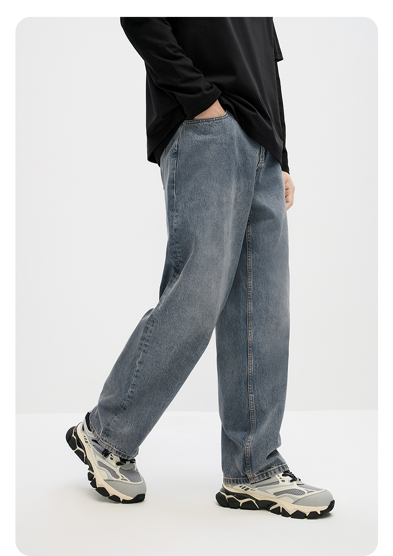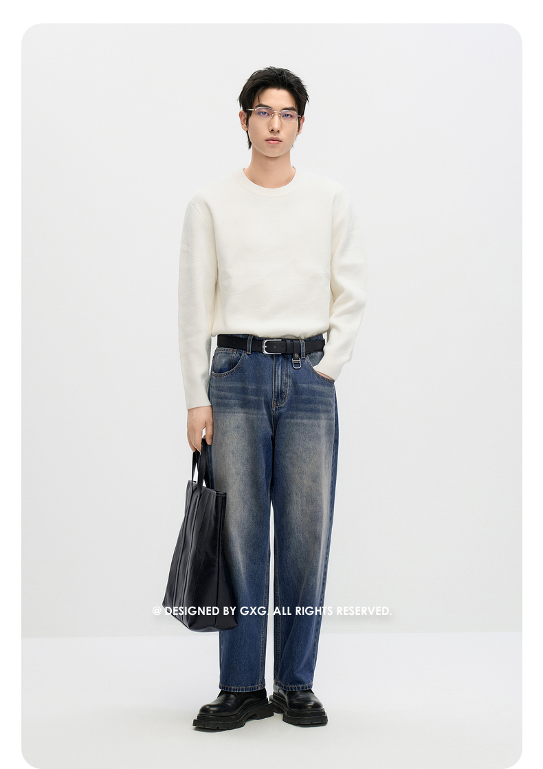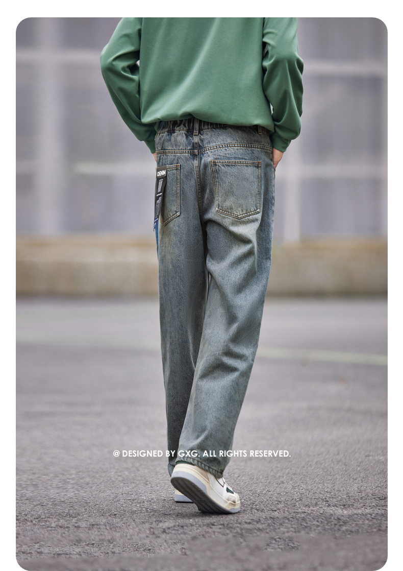 GXG男装 复古水洗舒适休闲时尚宽松直筒牛仔长裤 秋季热卖
