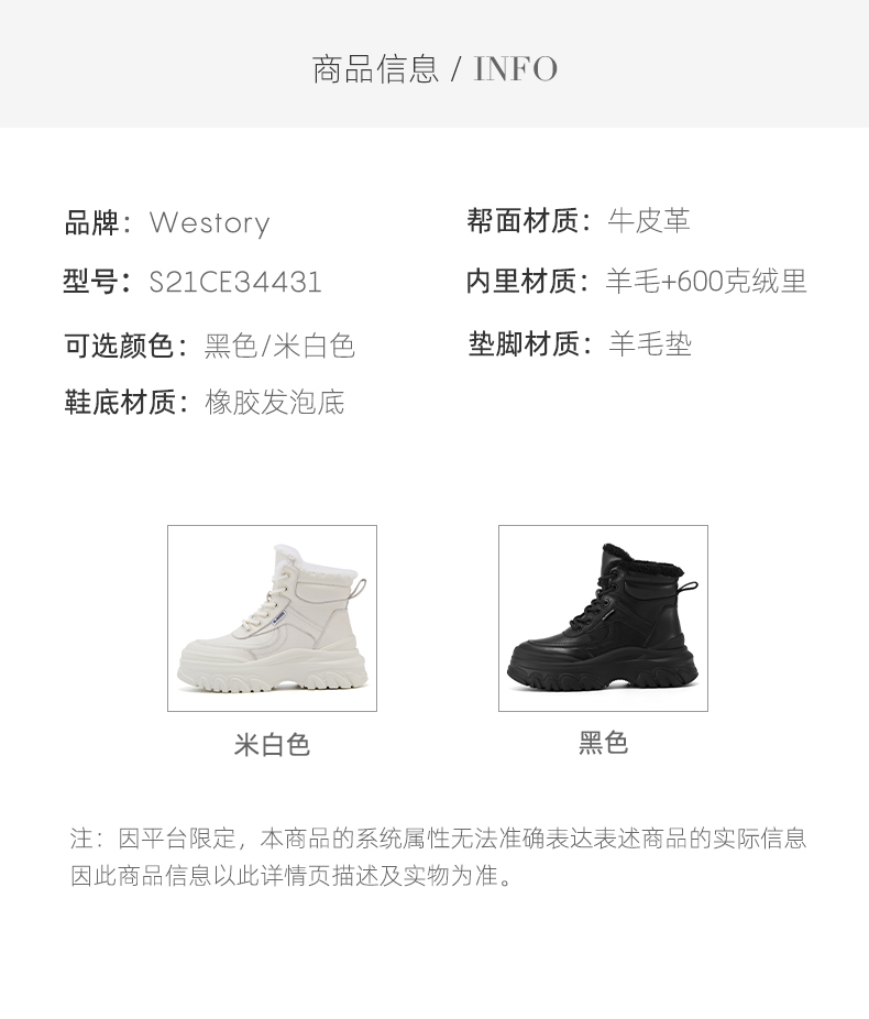 westory2021冬季新款厚底显高马丁靴绒里时尚女短靴S21DS81481