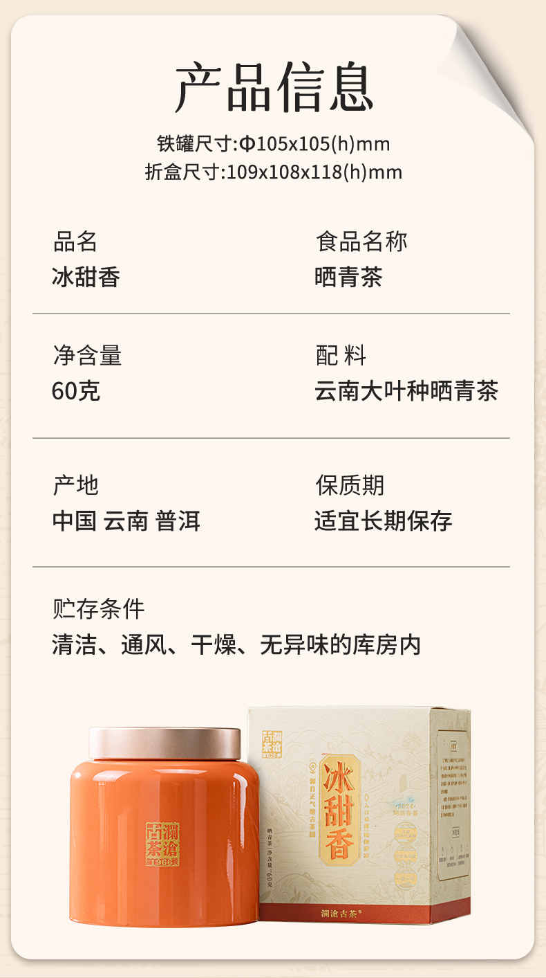澜沧古茶2024年冰甜香正气塘古树纯料春茶散茶60g/罐*2