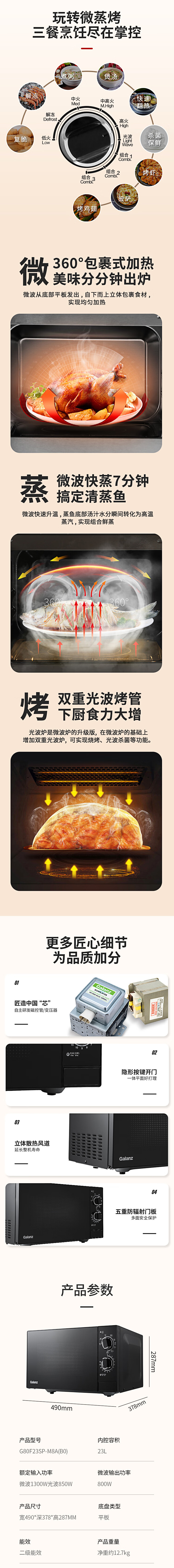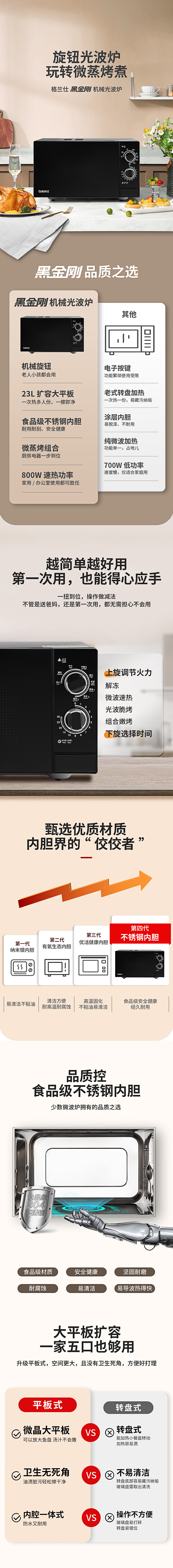 格兰仕 微波炉 G80F23SP-M8A(B0) 23升 定频 二级能效 平板式 按键式开门 不锈钢内胆 加热烧烤功能 机械式操控