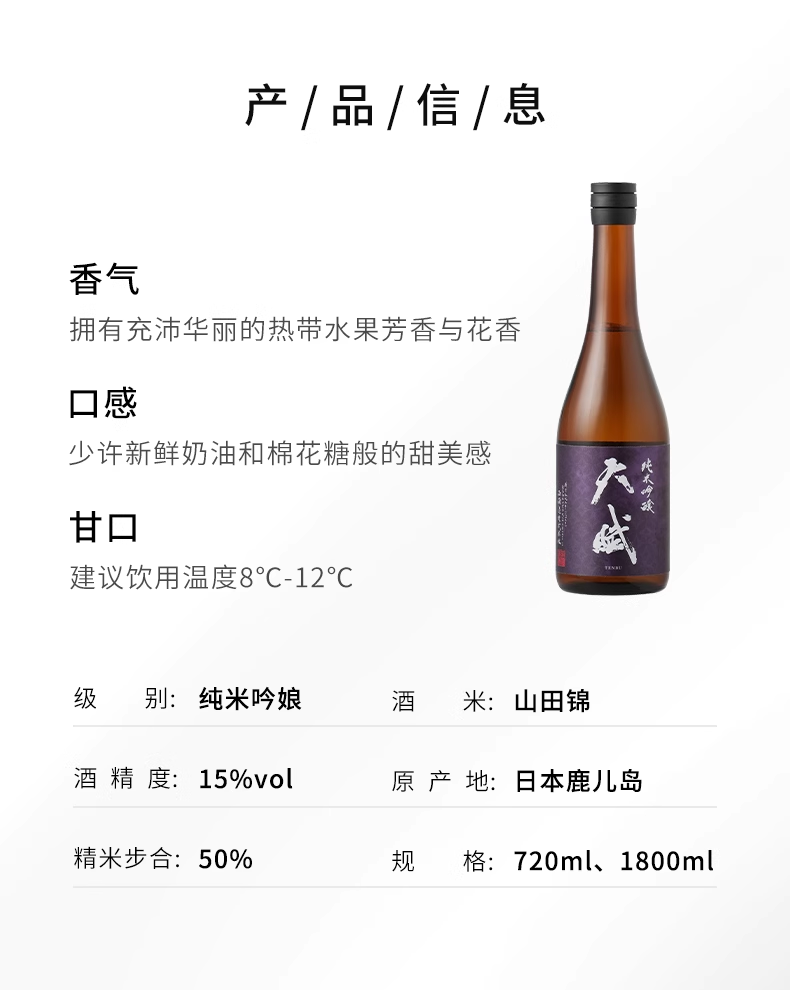 【跨境】TENBU 天赋纯米吟酿720ml