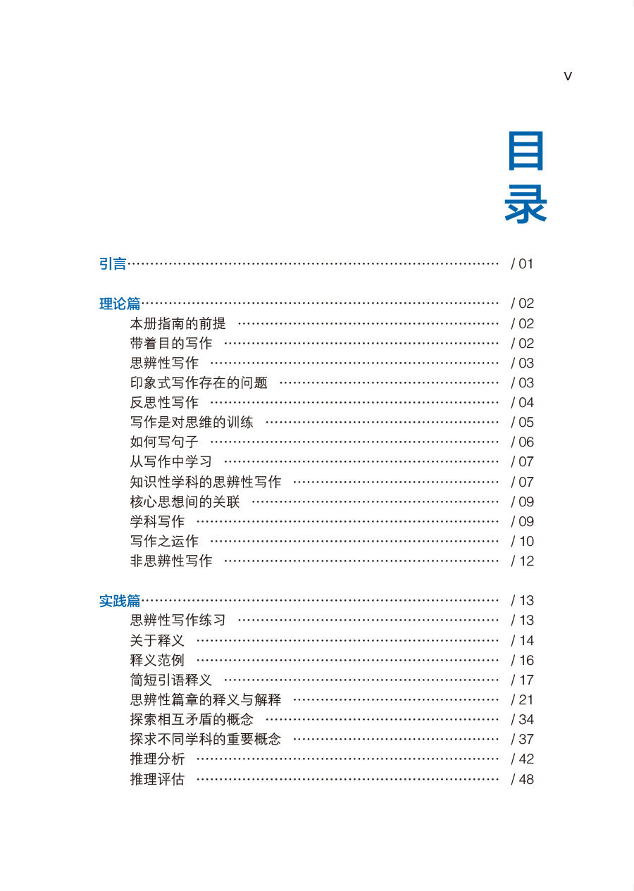 《如何进行思辨性写作》为思想者指南系列丛书(中文版)中的一本,属于其中的“教学篇”,主要针对广大教师和学生而设计。本书主要内容为如何提升思辨能力,并将其应用于写作过程中,从而提升写作效果,使文章更有思想性。全书分为理论和实践两大部分,系统讲解思辨性写作的理论基础及实际操作,并在附录中提供相关材料进行深入阐释。旨在指导学习者掌握思辨性写作的方法,提升写作和产出效果,培养学习者的批判性思维和逻辑清晰地表达所学知识的能力。