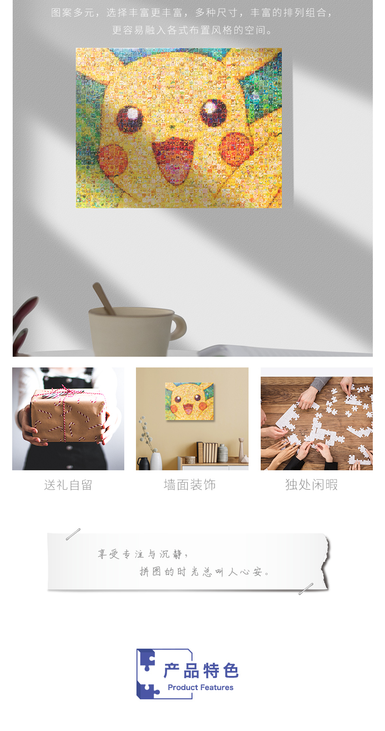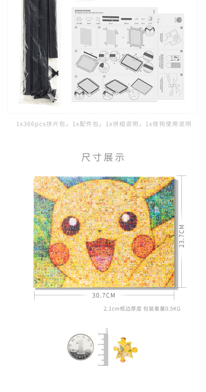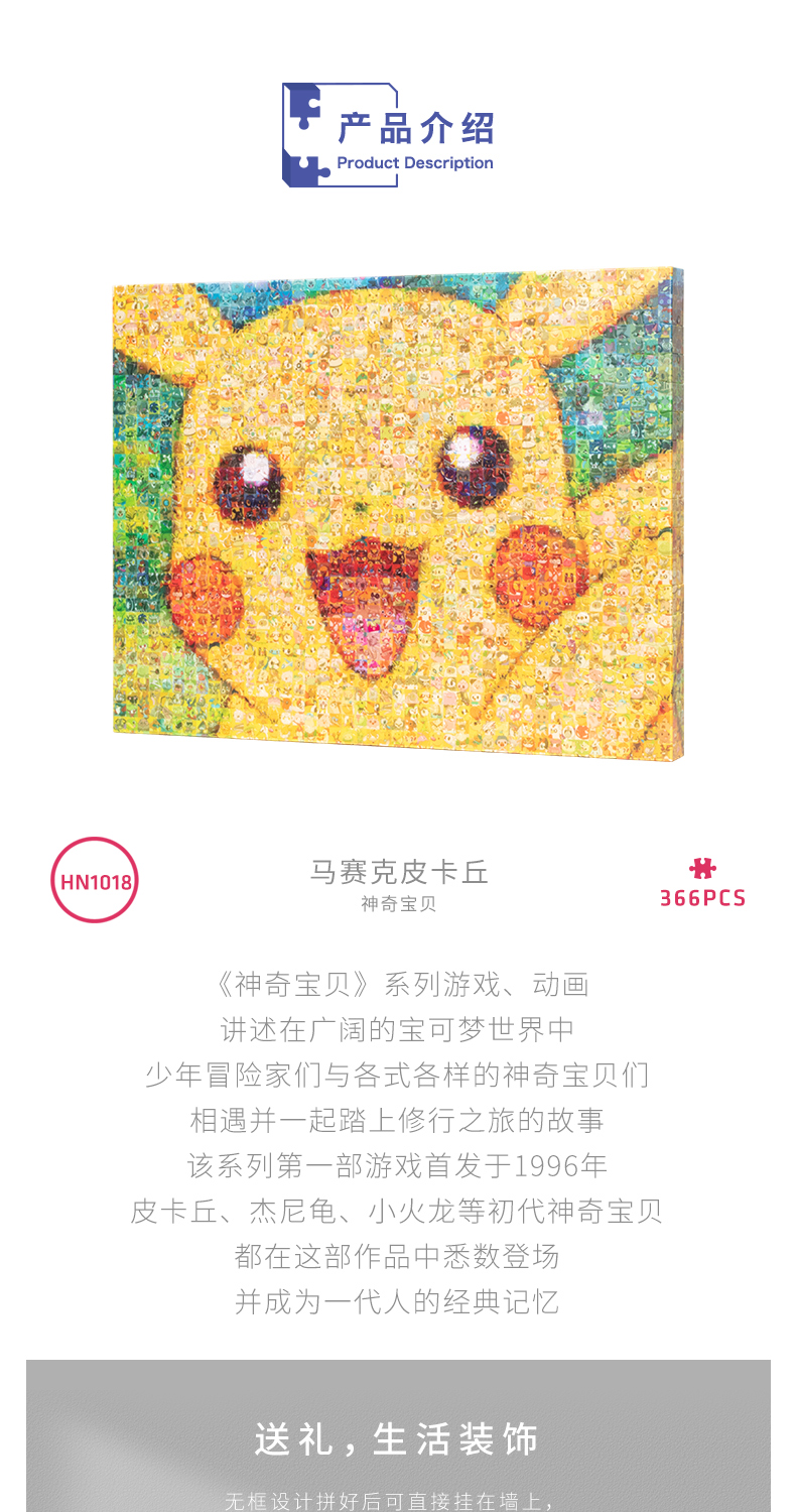 366片 无框平面拼图 HN1018 马赛克皮卡丘
