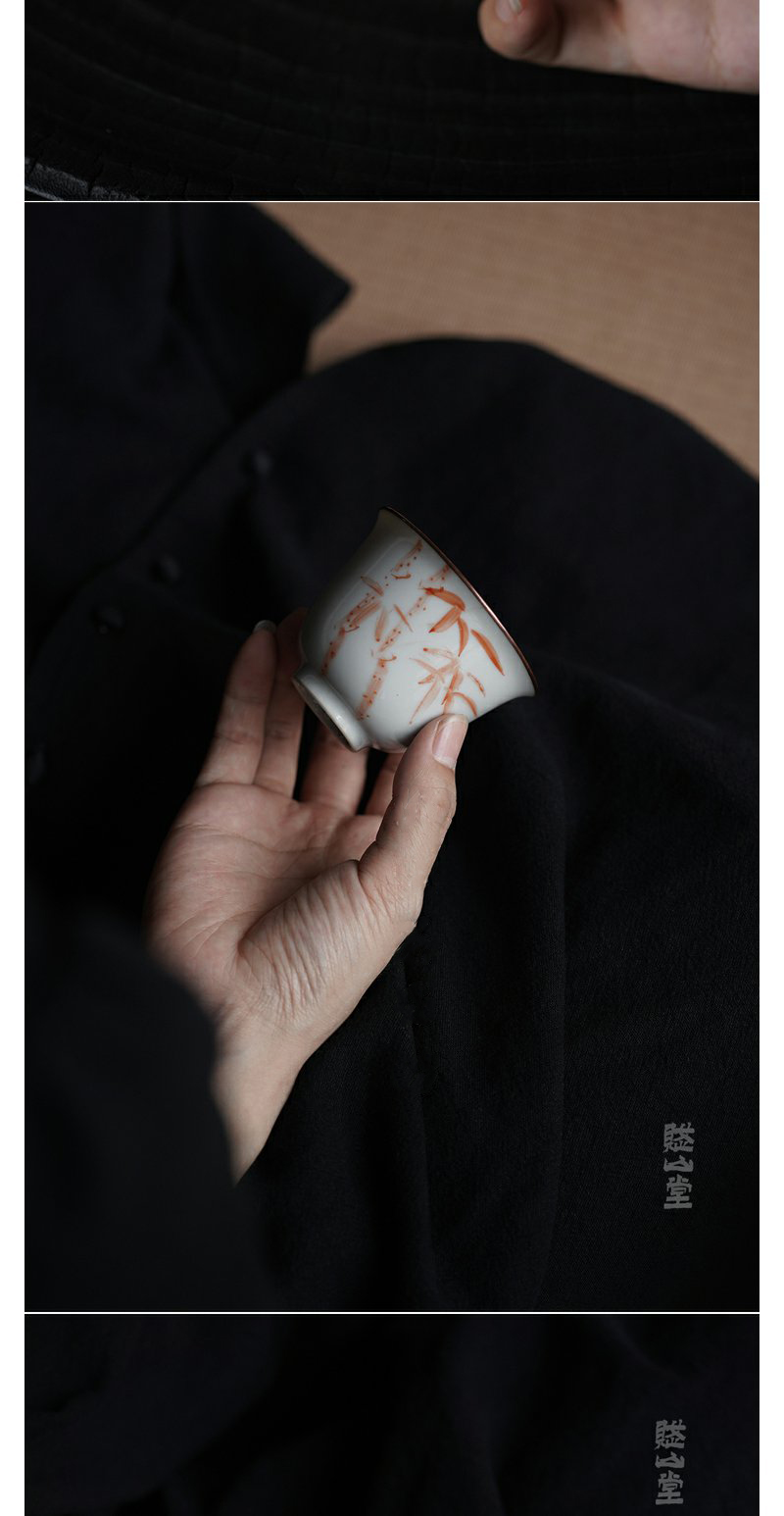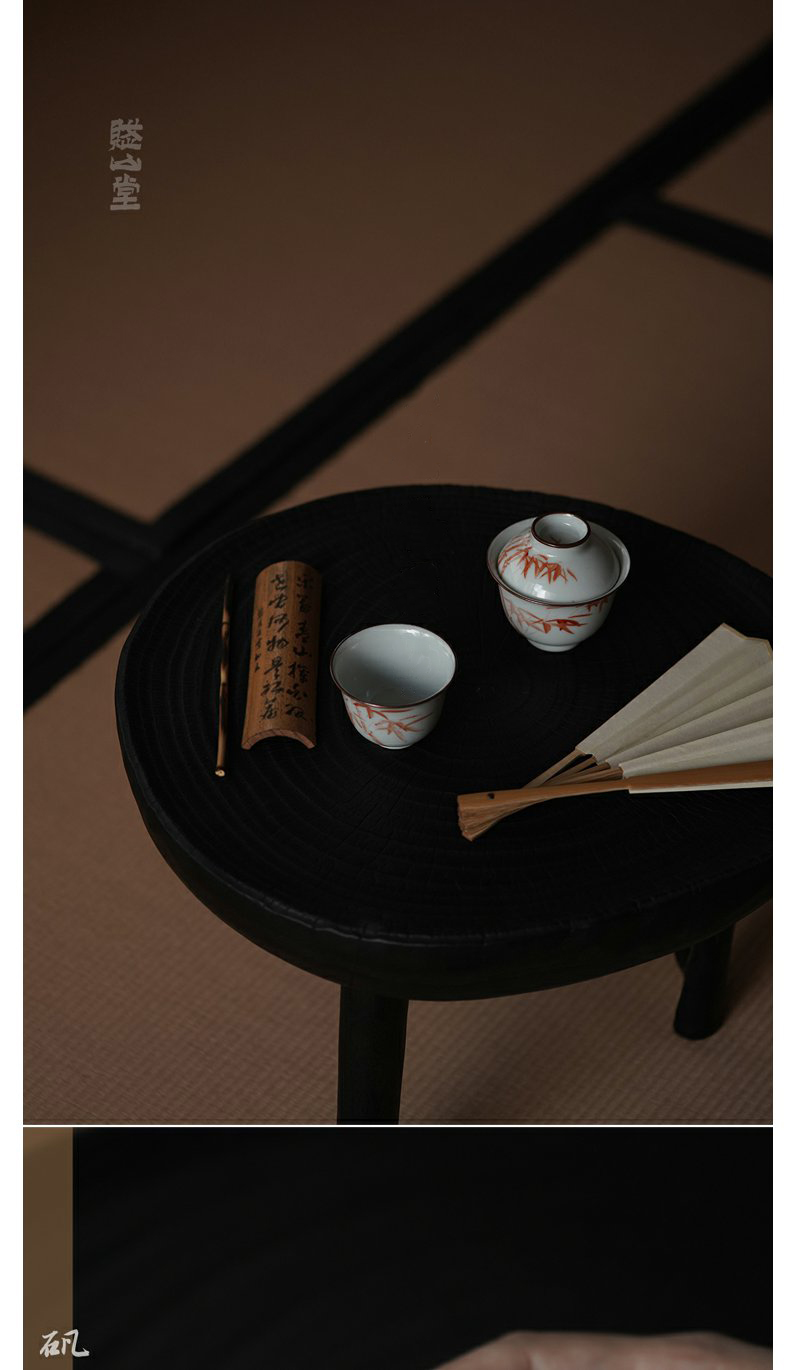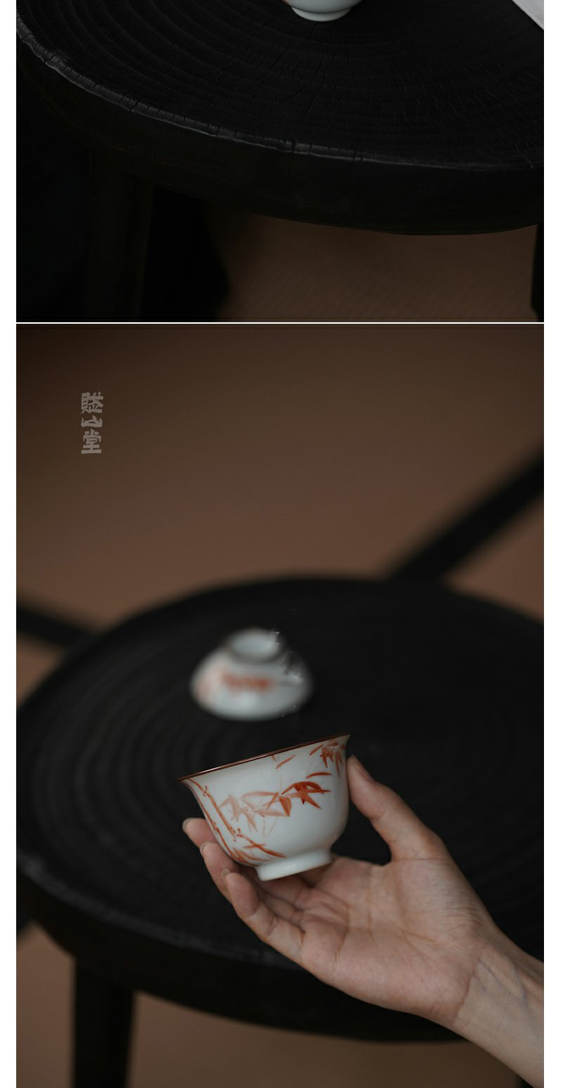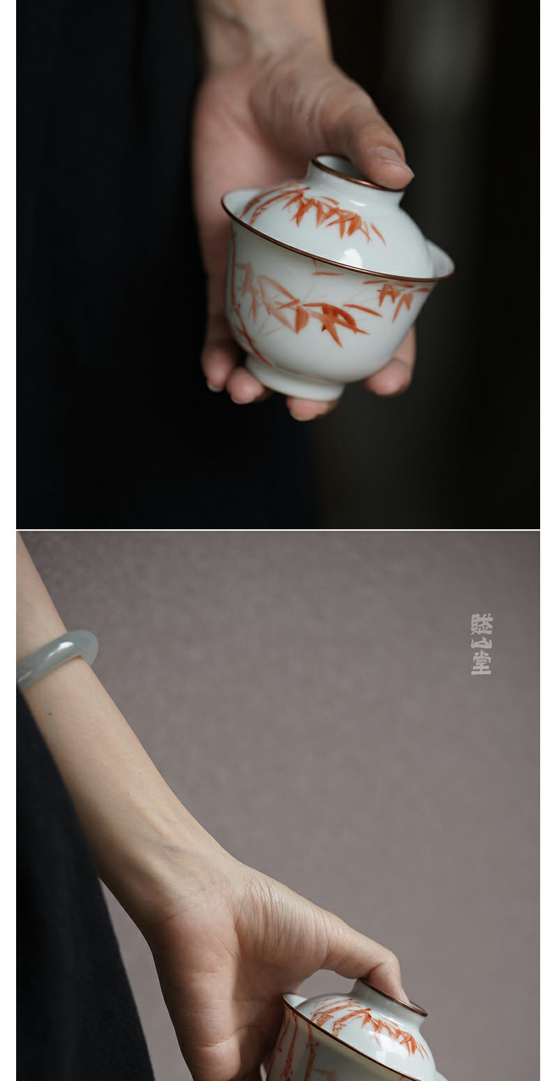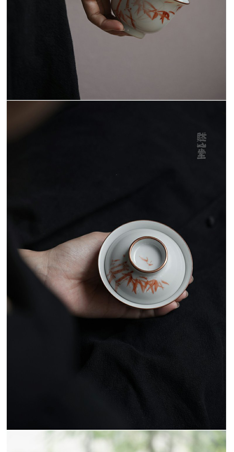景德镇赋山堂 巩红斑竹铜口盖碗手绘诗文主人杯锔铜口泡茶碗新