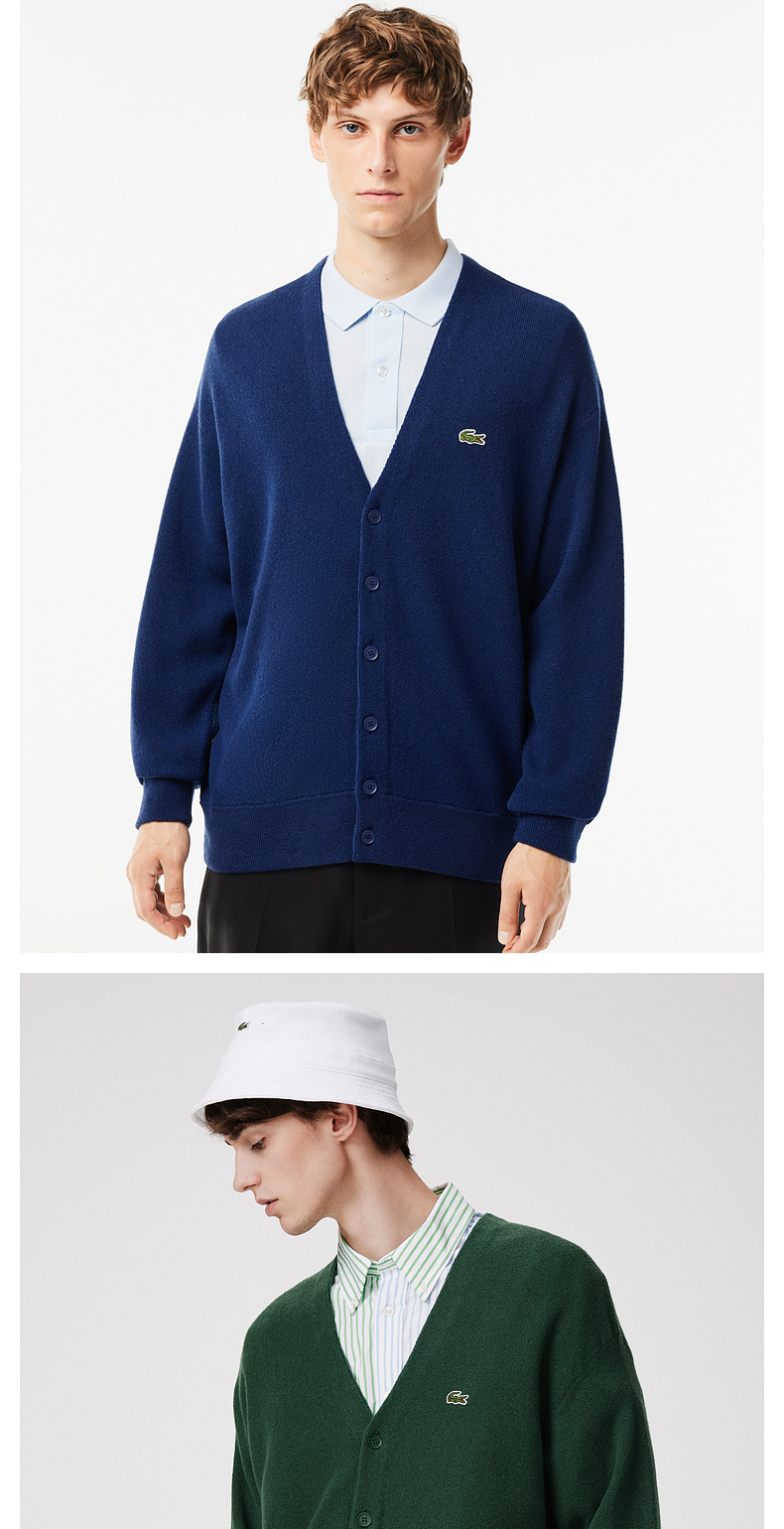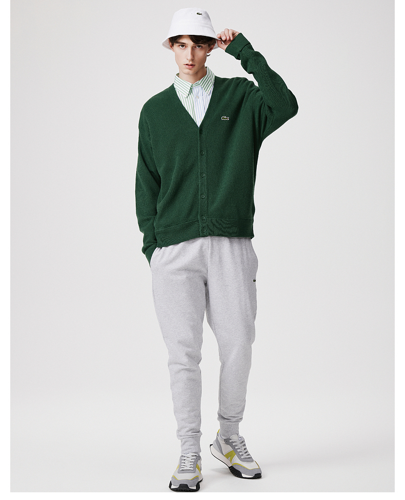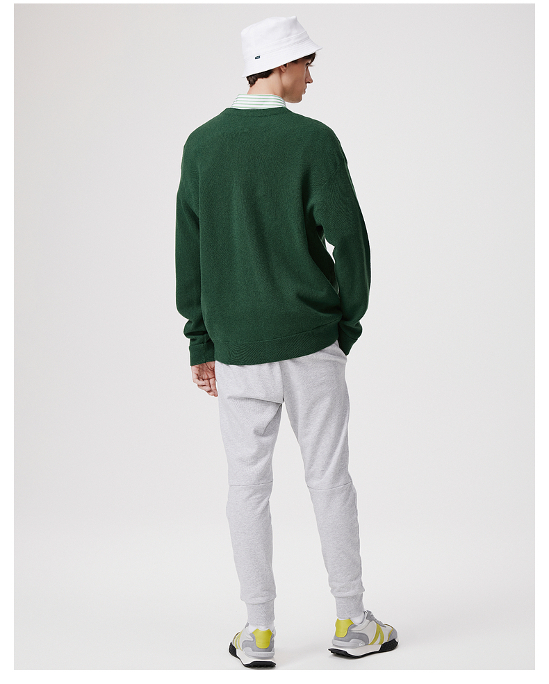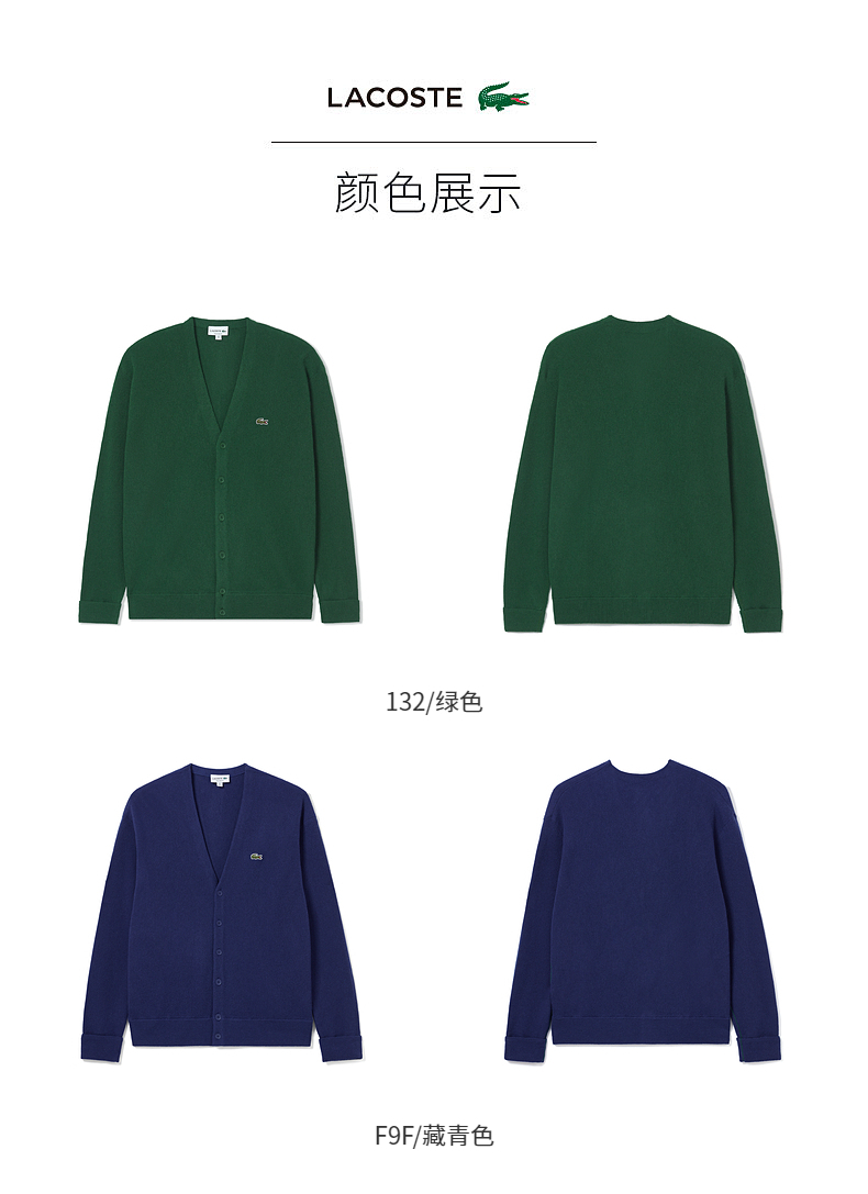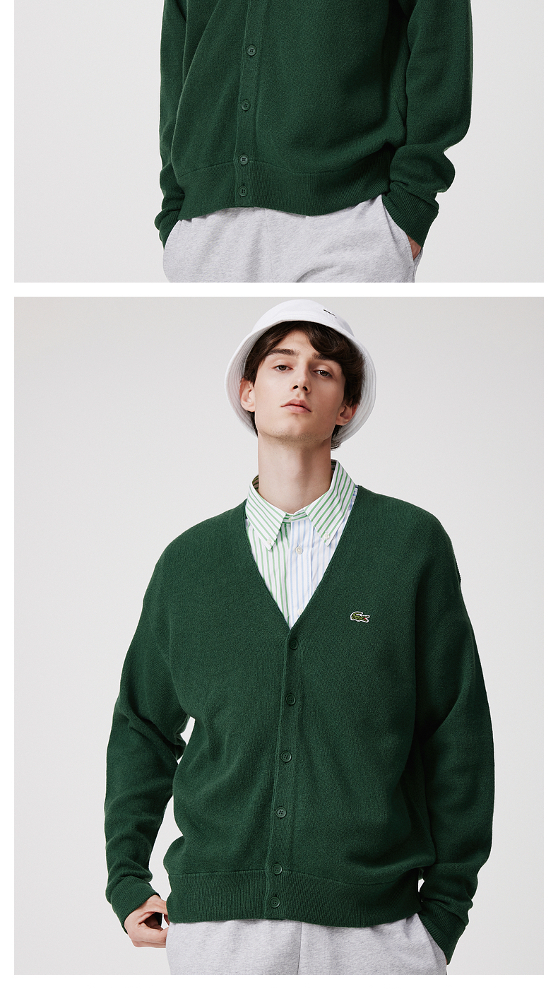 【海南专供价】Lacoste法国鳄鱼男装绿色V领休闲舒适羊毛衫针织毛衣开衫AH0397-98