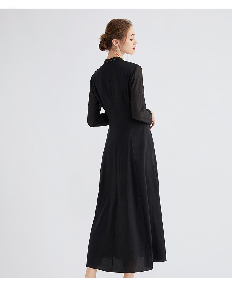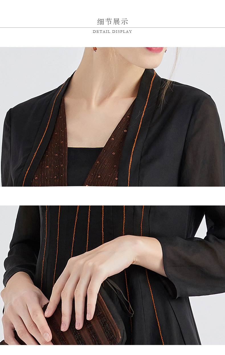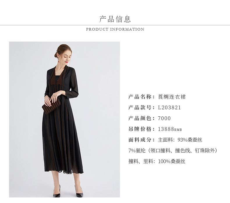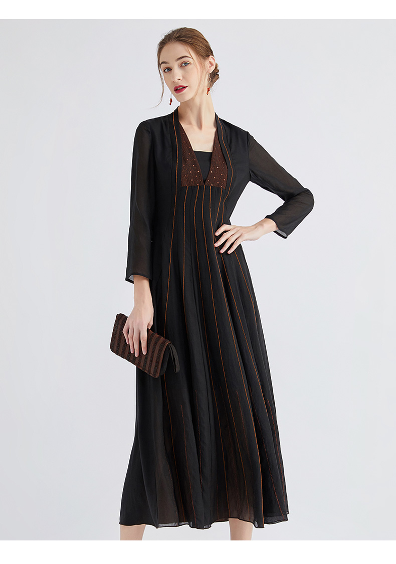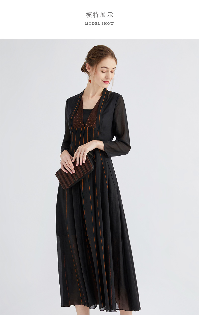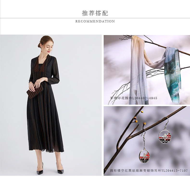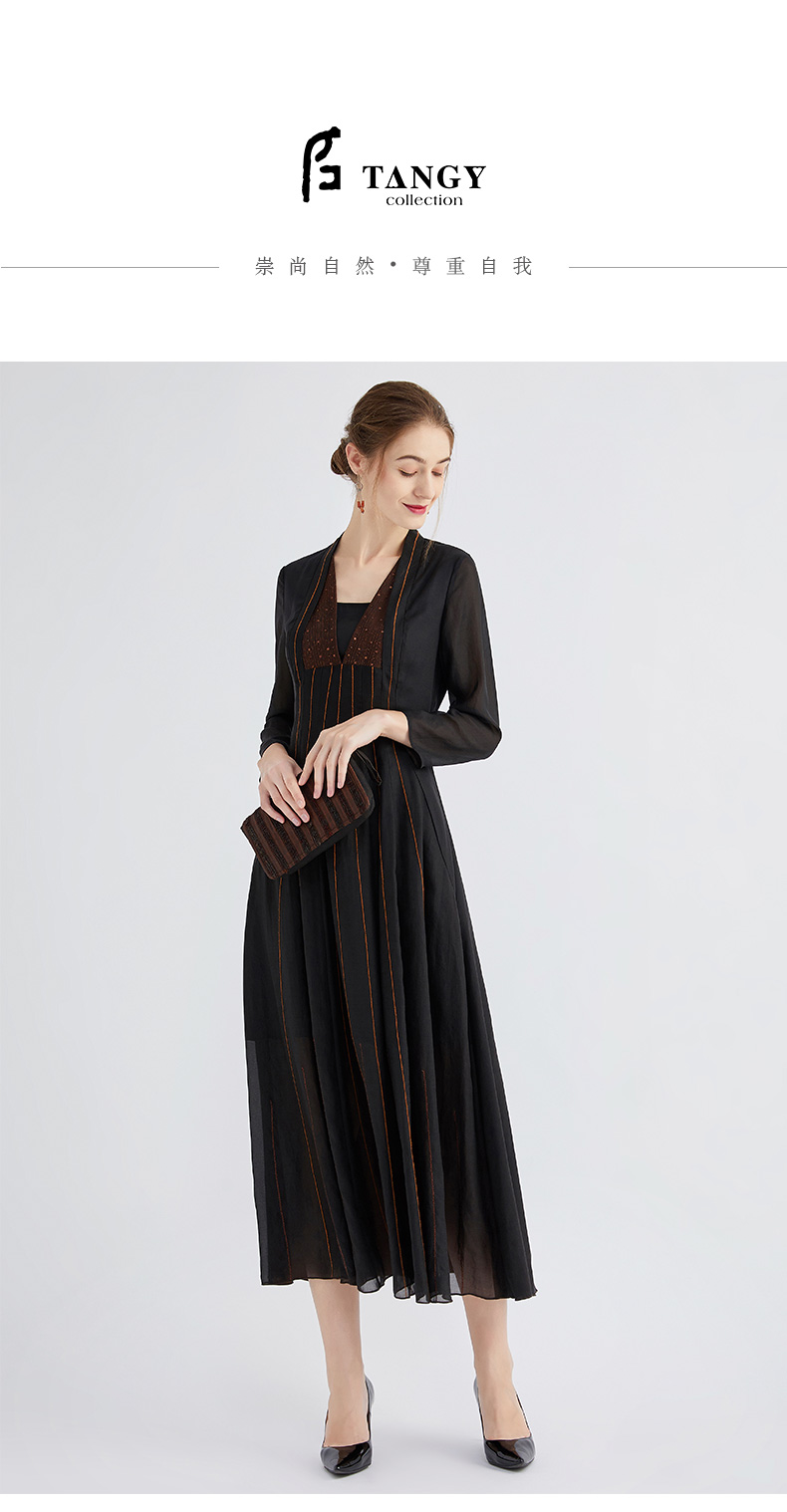 TANGY Collection/天意精品2020年秋季新品林隐系列柯纱线迹莨绸连衣裙