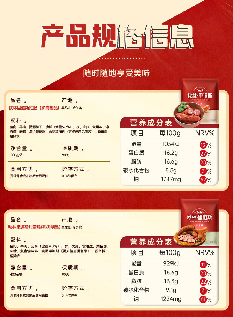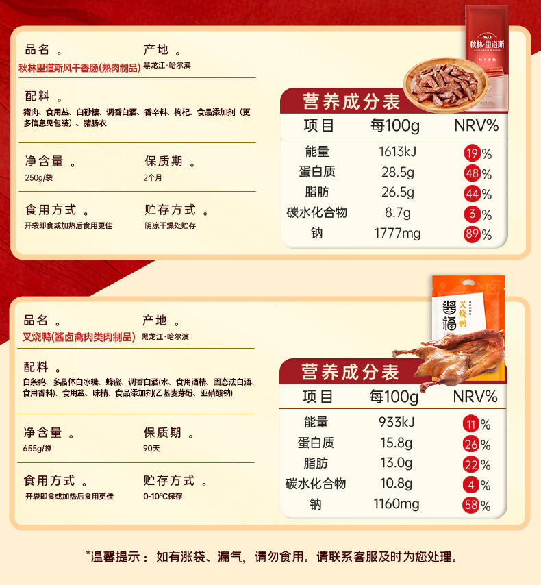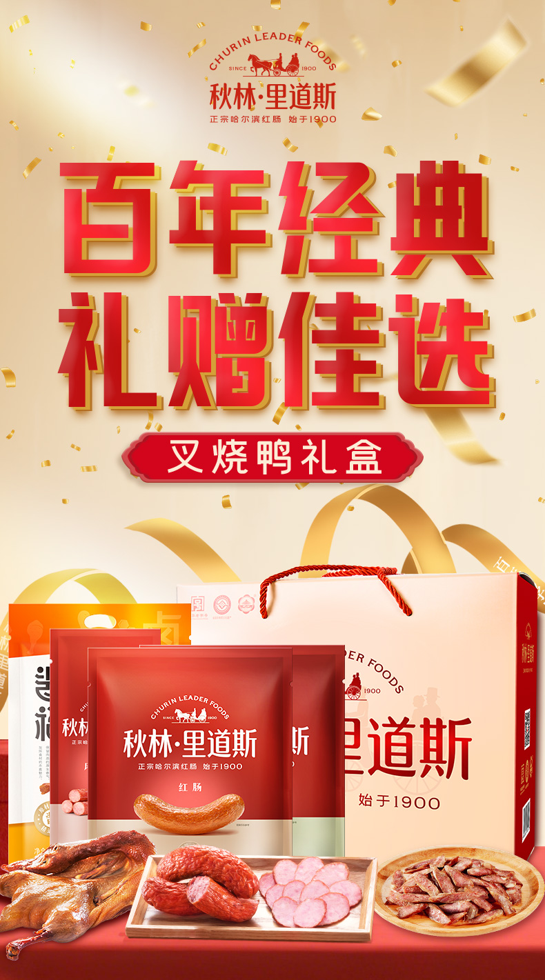 秋林里道斯红肠1805g熟食礼盒【红肠+儿童肠+风干肠+叉烧鸭】