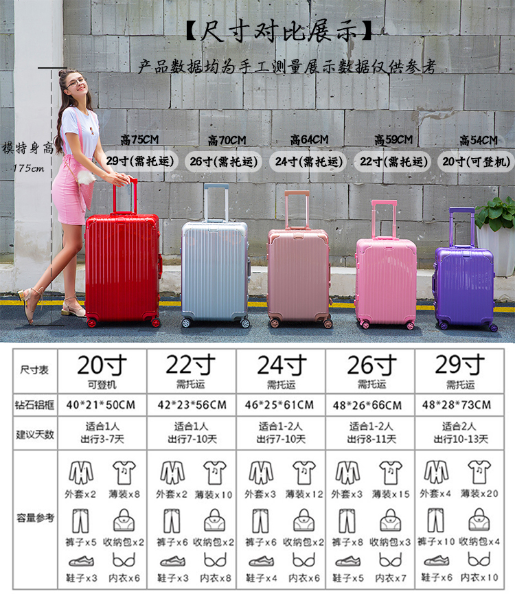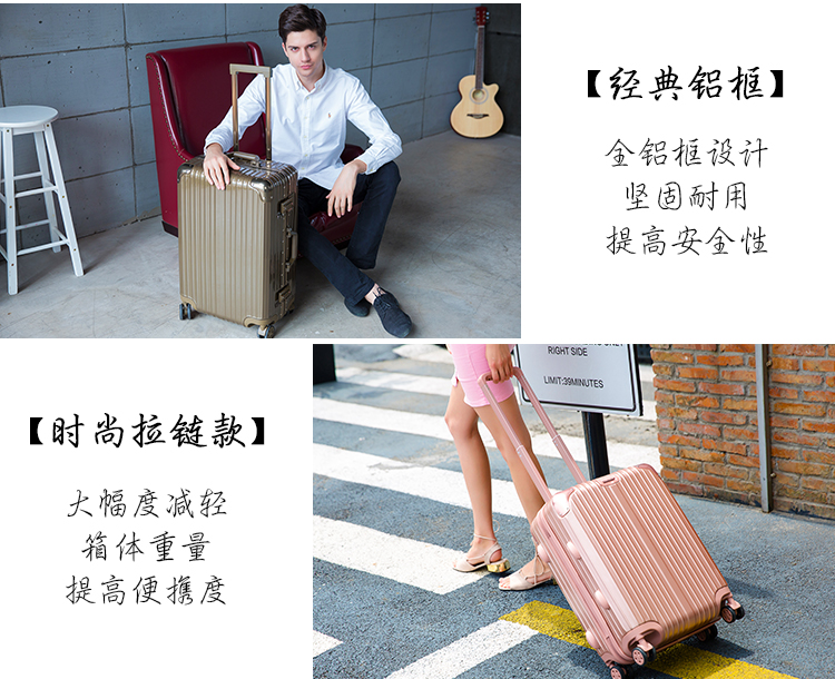 【黛黛安}黛黛安铝框拉杆箱28行李箱女学生26寸万向轮密码旅行箱男24皮箱子20寸