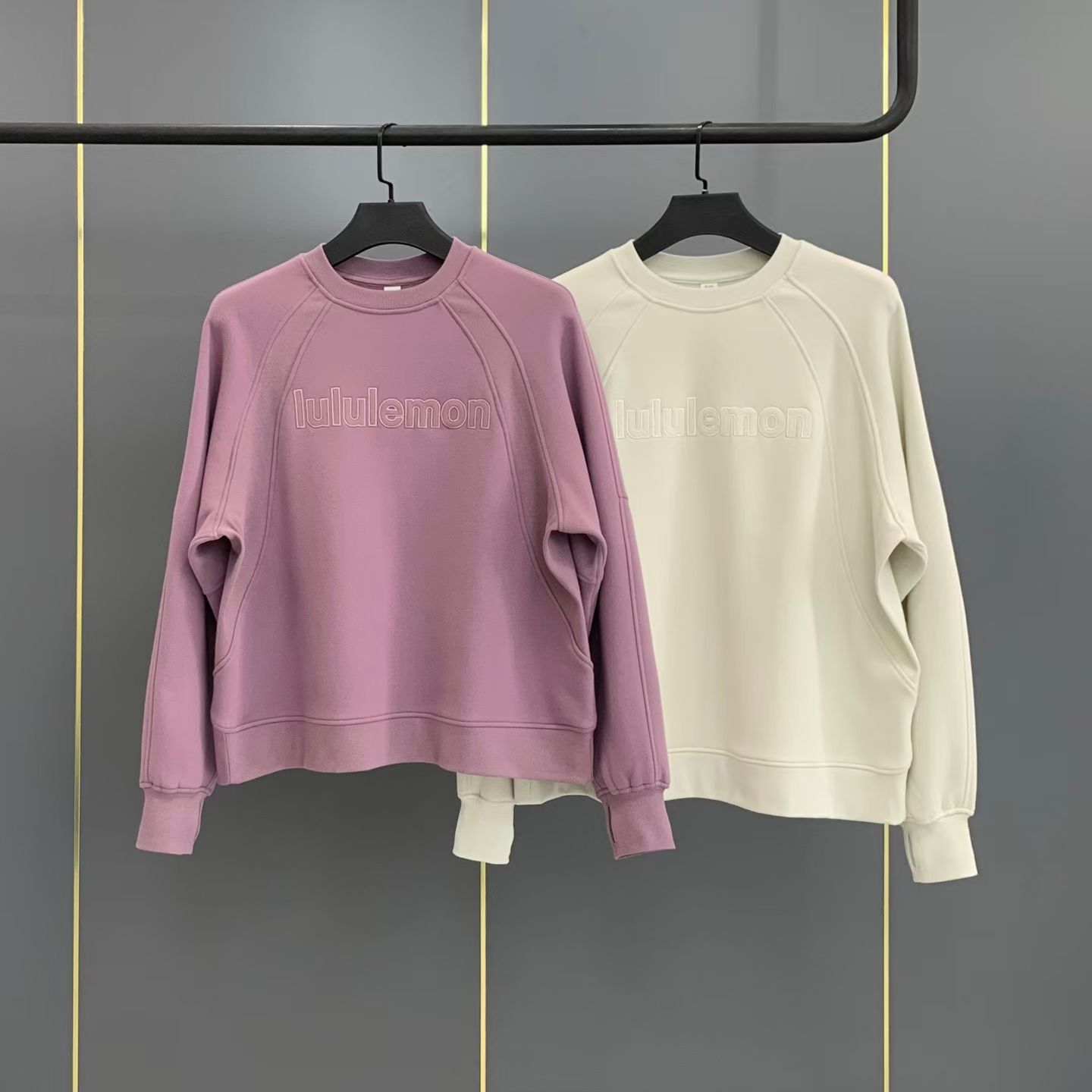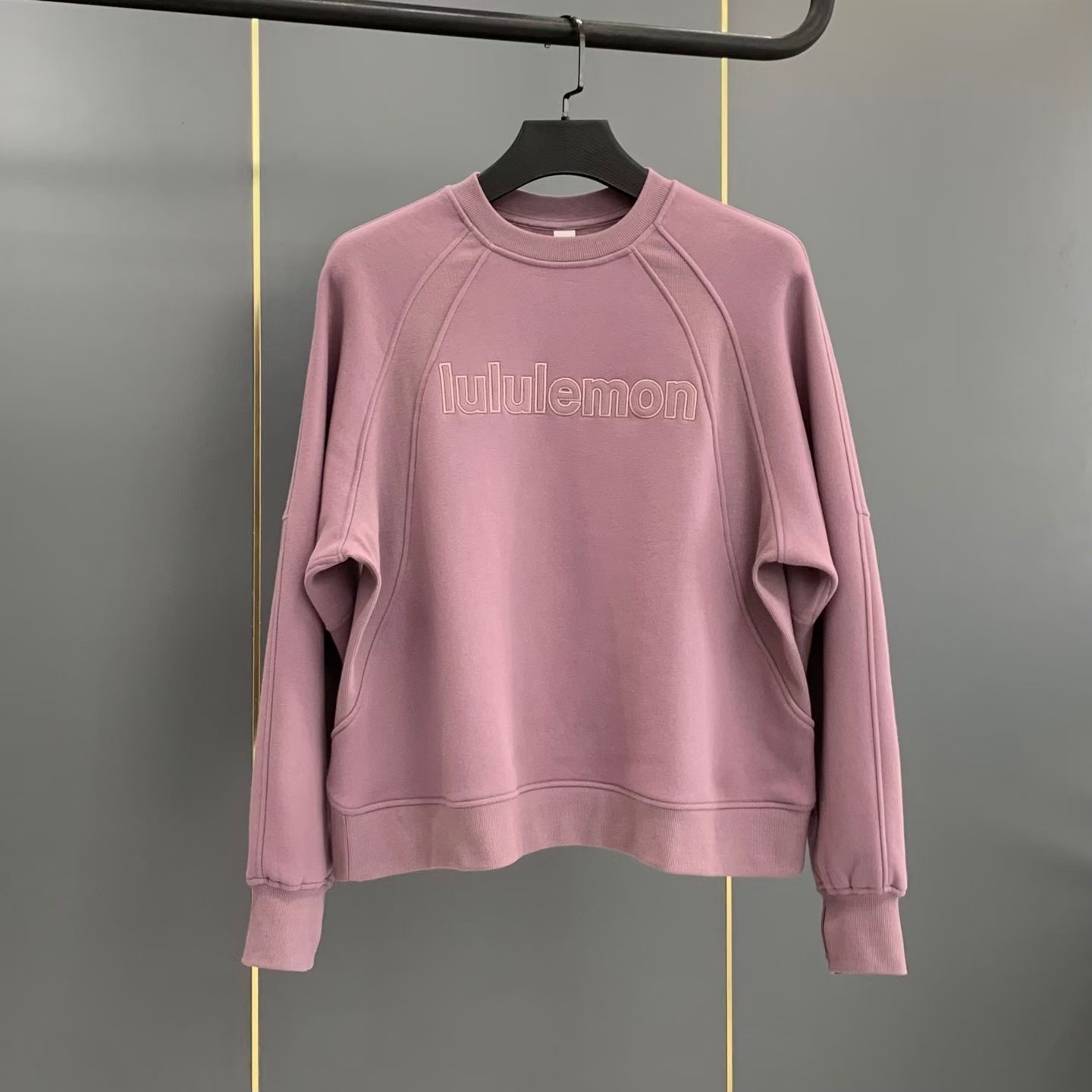 现货 LULU露露字家母徽标绣刺圆领绒加衣卫
