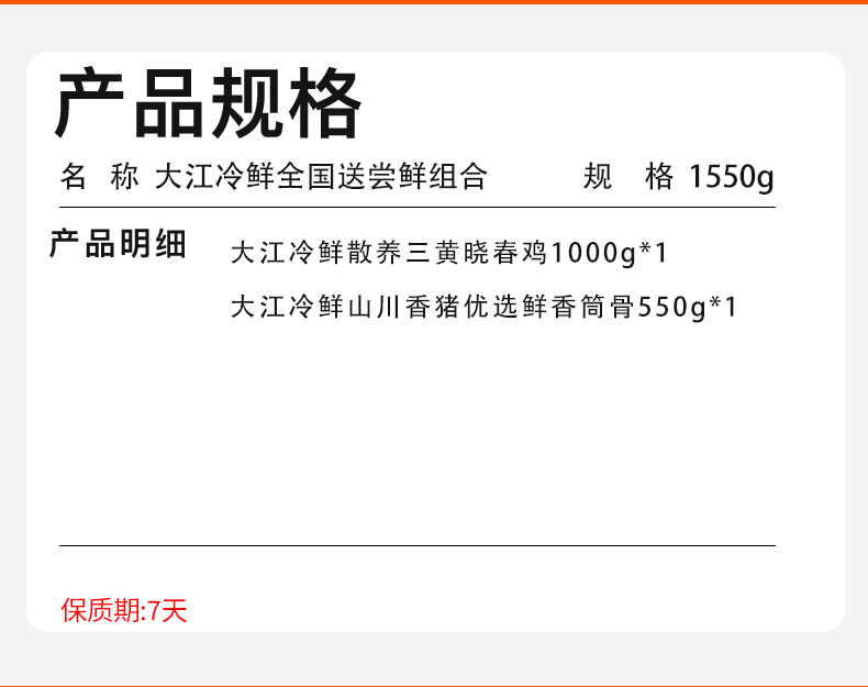 【发出后不支持拦截退货】大江 冷鲜全国送尝鲜组合 1550g