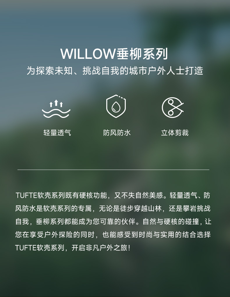 TUFTE 男士垂柳系列软壳夹克